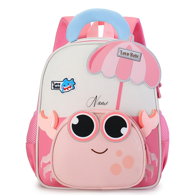 personalized large capacity backpack, stylish cartoon backpack, cute crab pattern, zipper closure