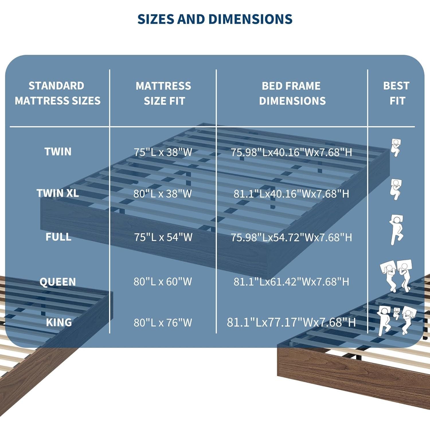 Platform Bed Frame King Size, Wooden Slat Support, No Box Spring Needed, Easy Assembly, Walnut