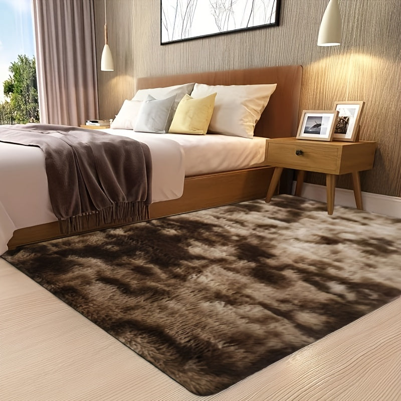 Plush Tie-Dye Coffee Brown Shag Area Mat - Soft, Fluffy Polyester, Non-Slip, Hand Washable