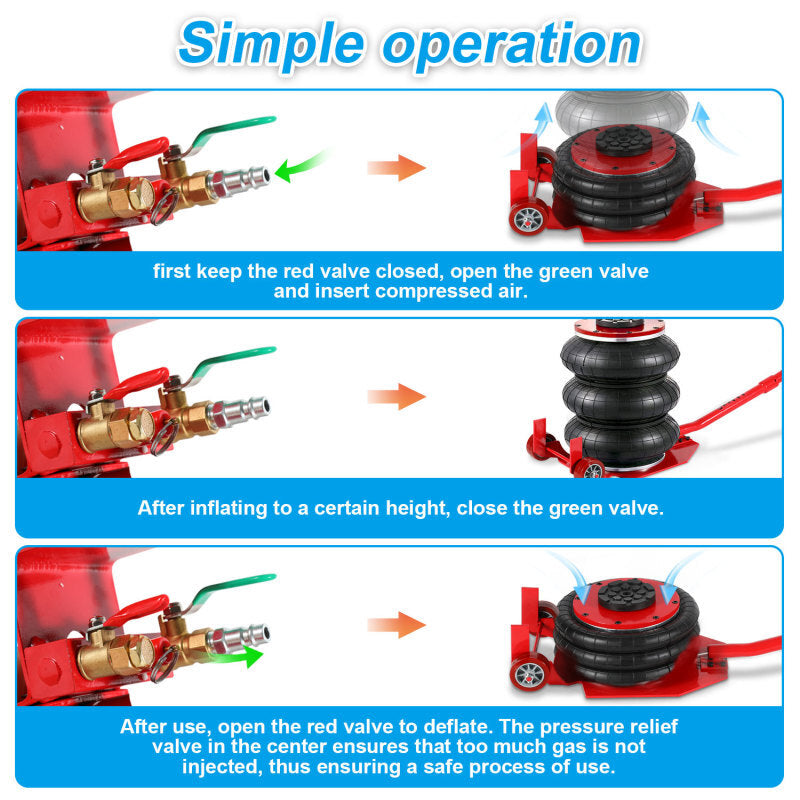 Pneumatic jack Adjustable Folding Handle Air Cushion Lifter 3T/6600Lbs Multi-Function