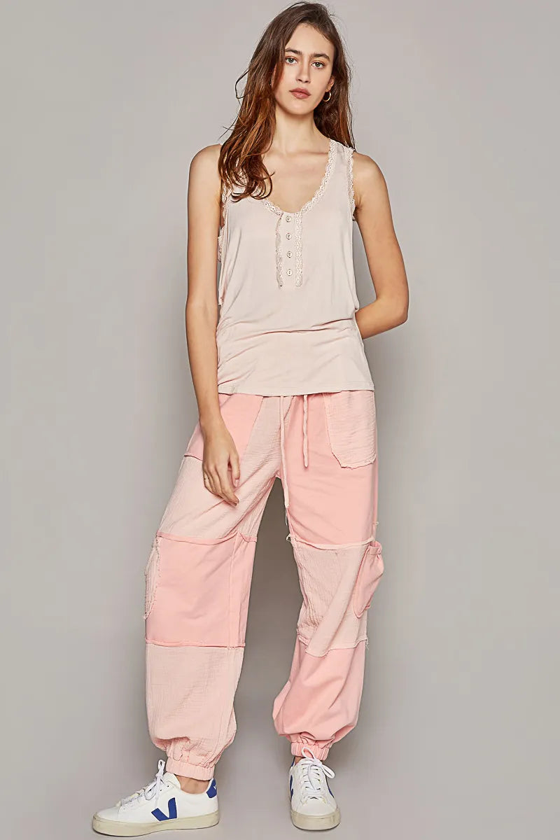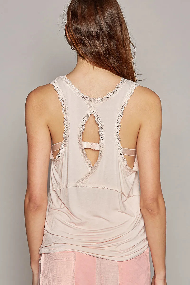 POL V-Neck Cutout Tank with Trim Detail