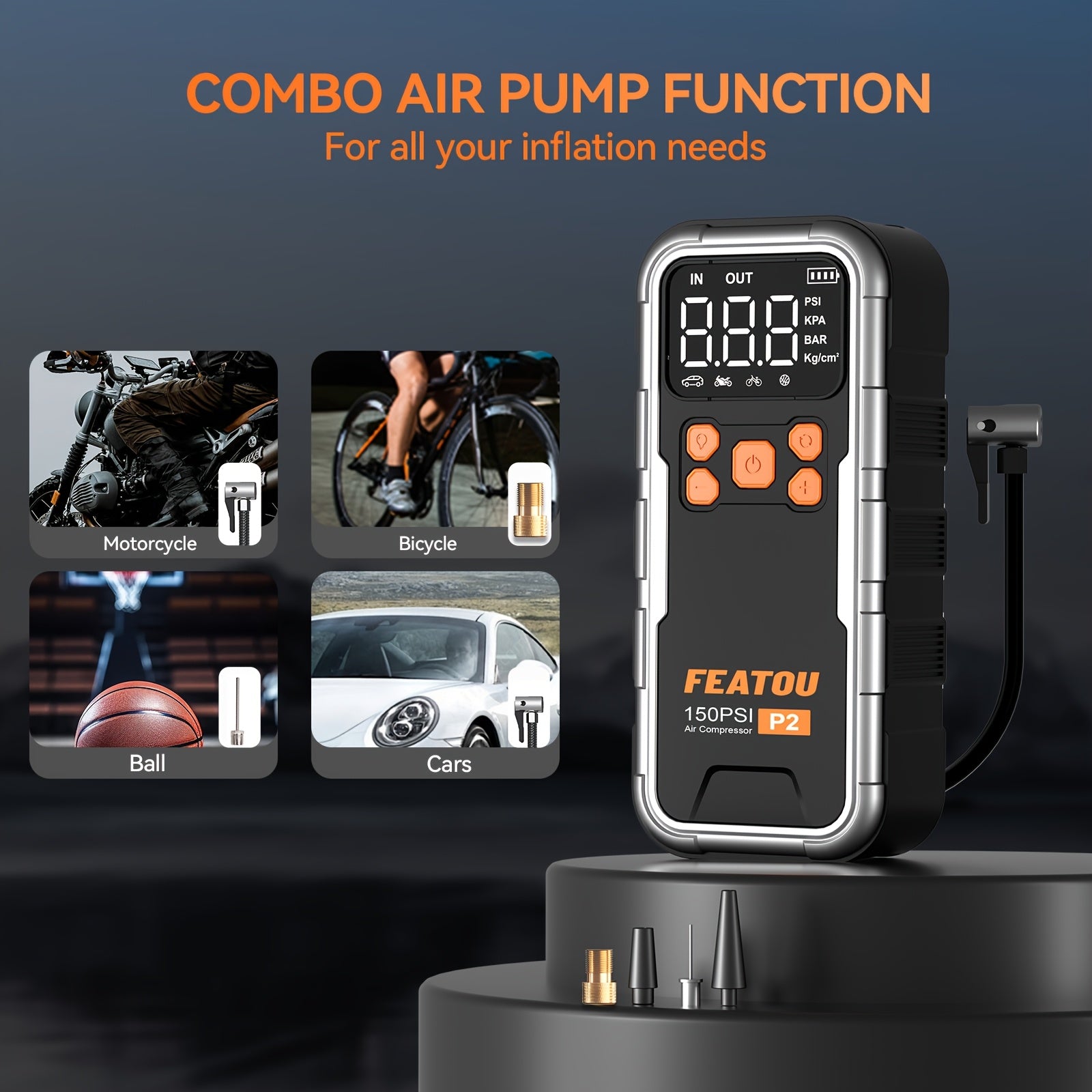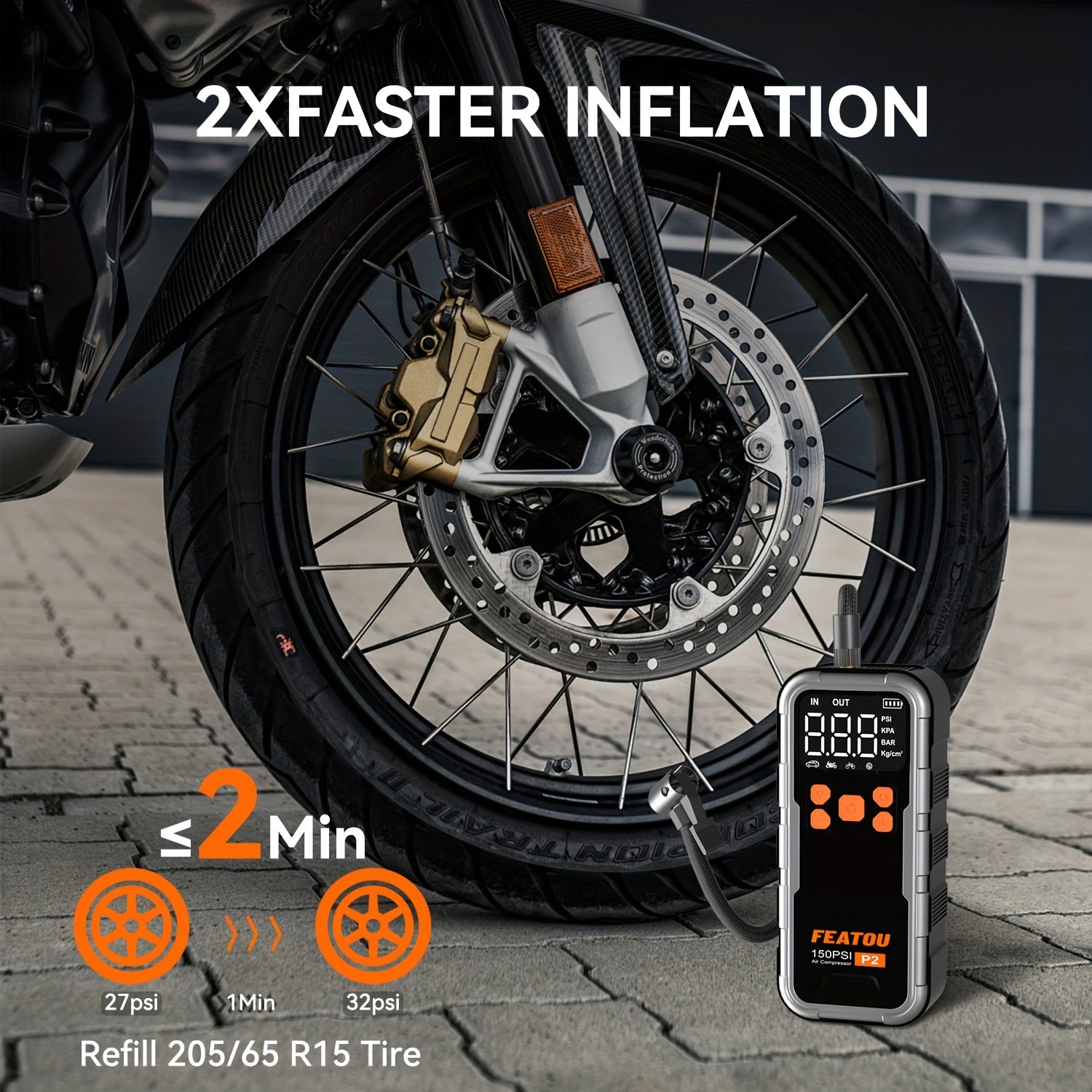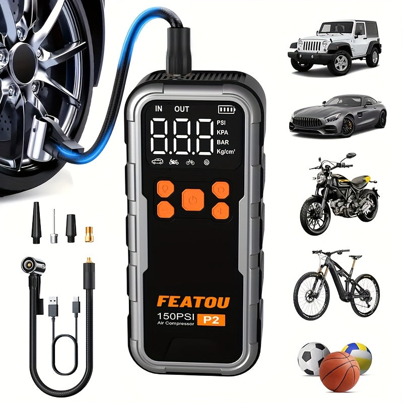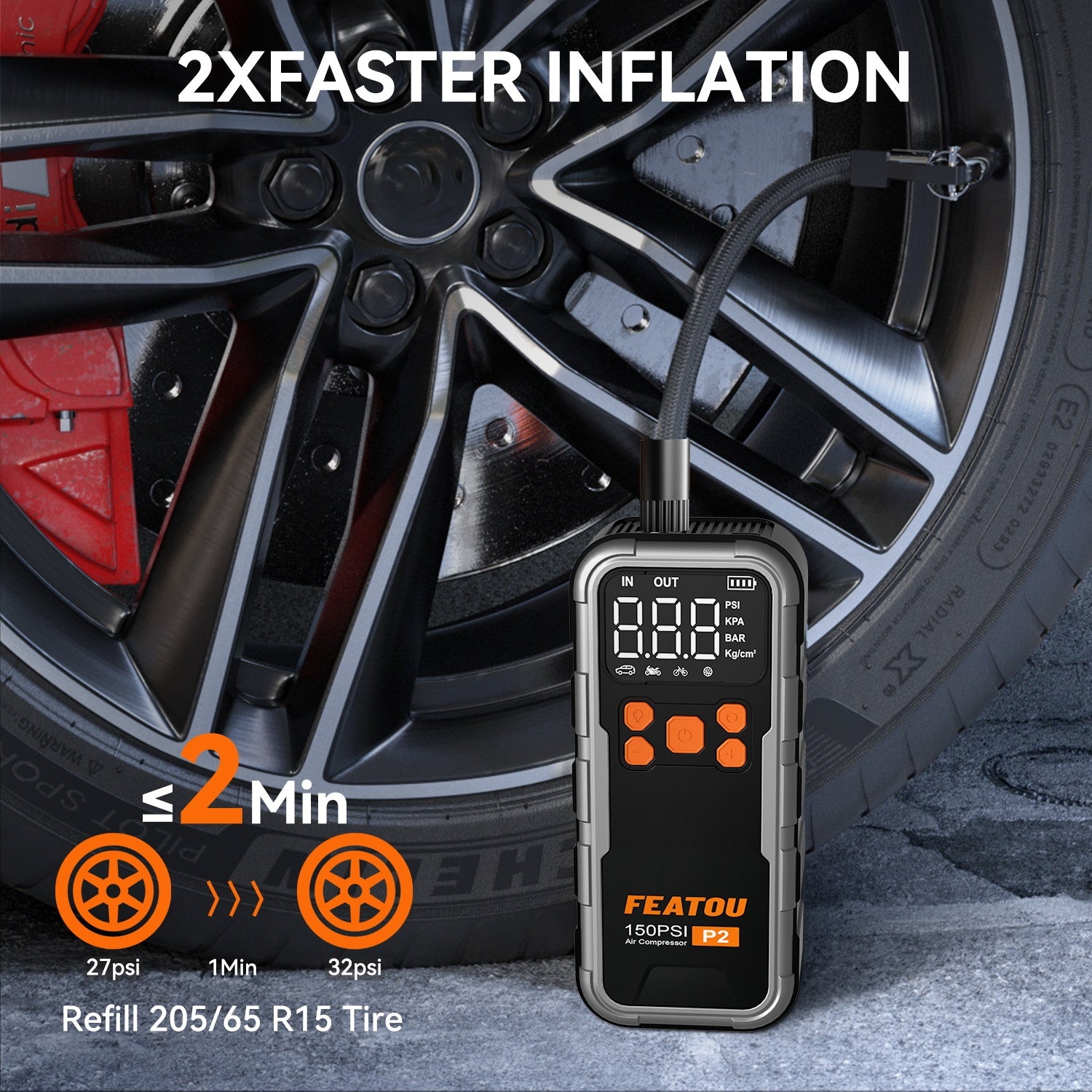 Portable Wireless Air Pump, Tire Inflator, Air Compressor 150 PSI Quick Inflation