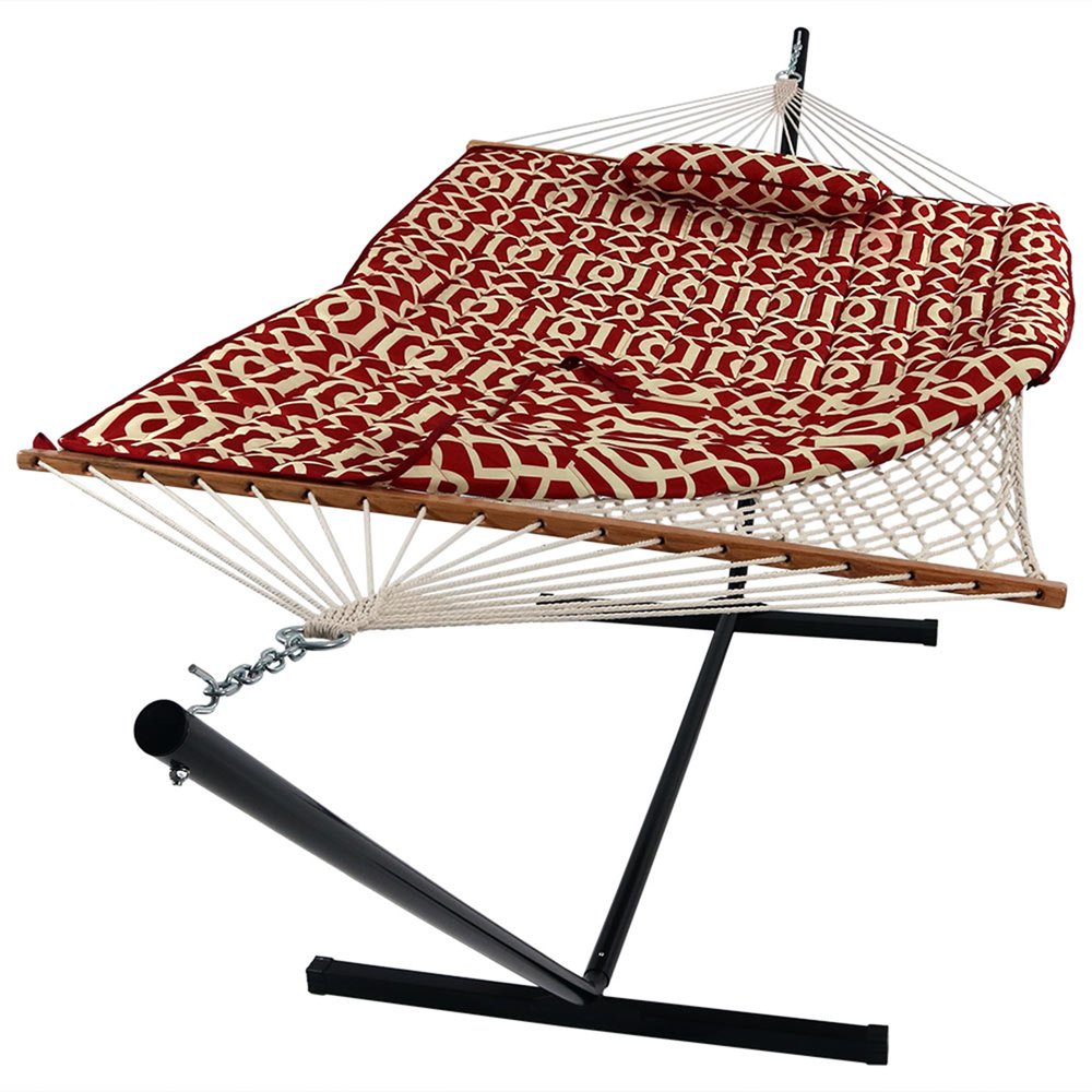 Red Geometric Spreader Bar Hammock Hammock Stand Included