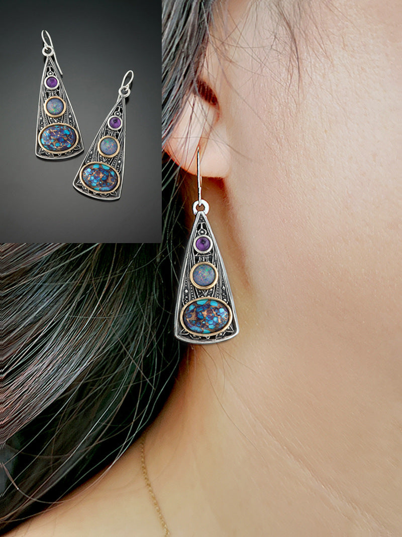Retro Fashion Creative Triangle Amethyst Opal Earrings