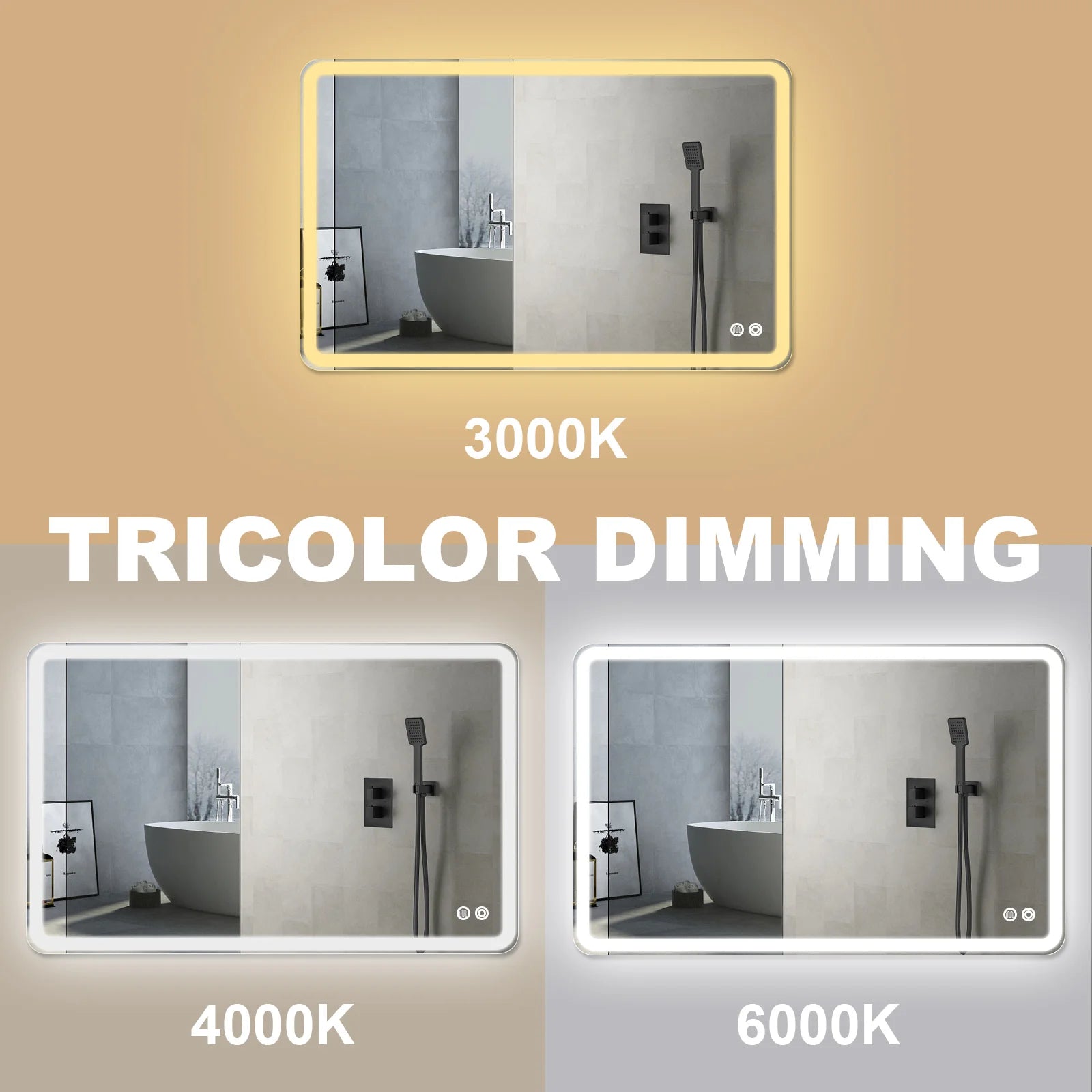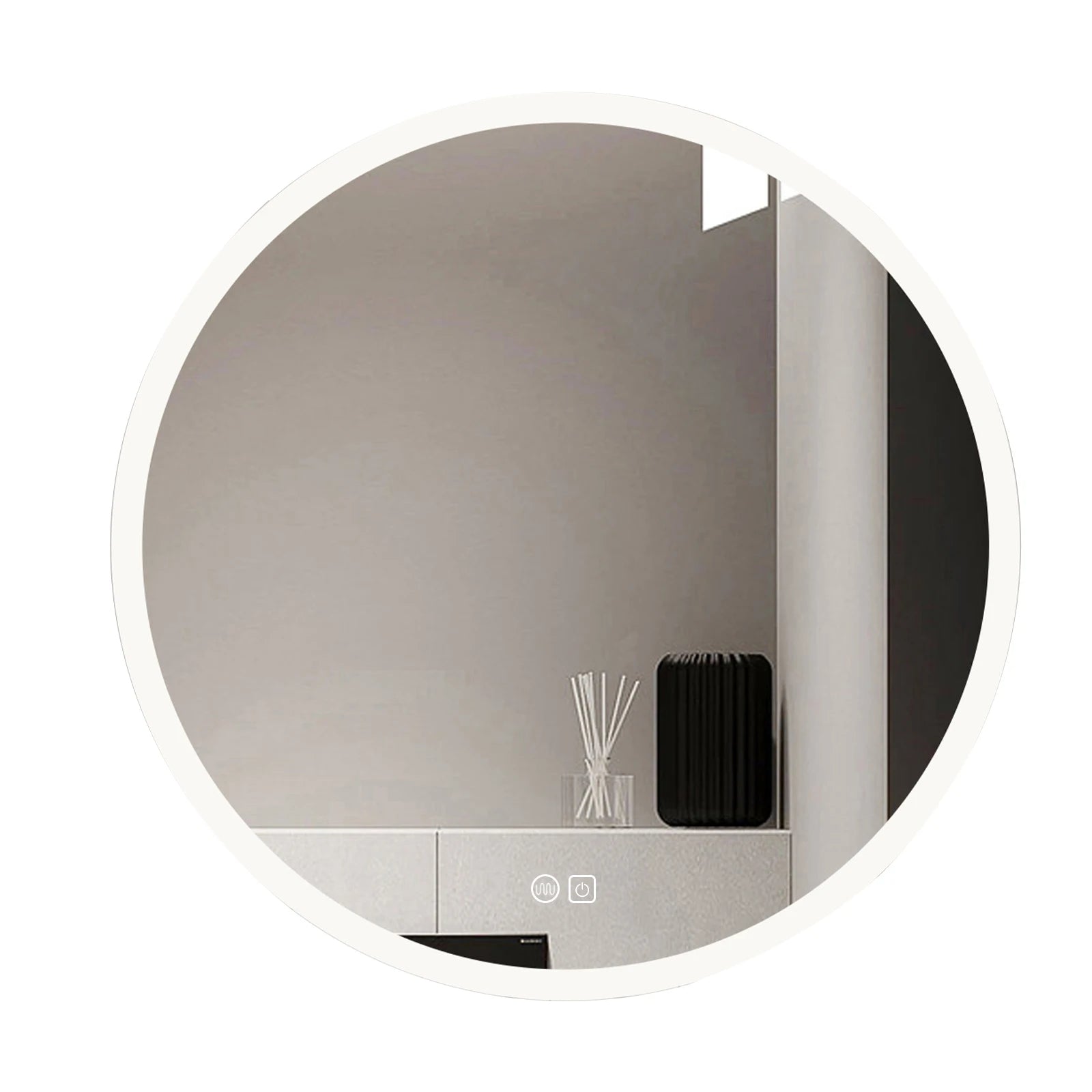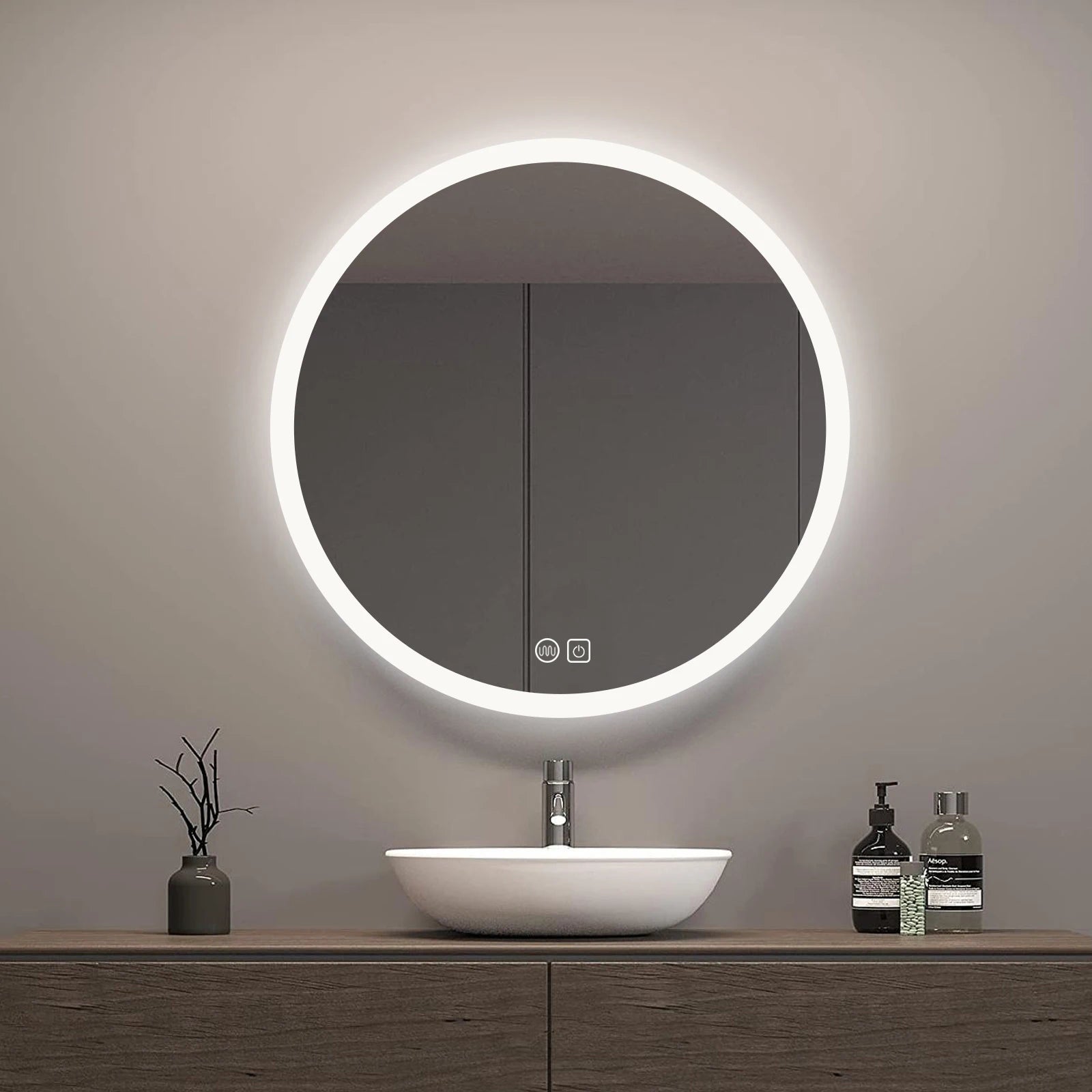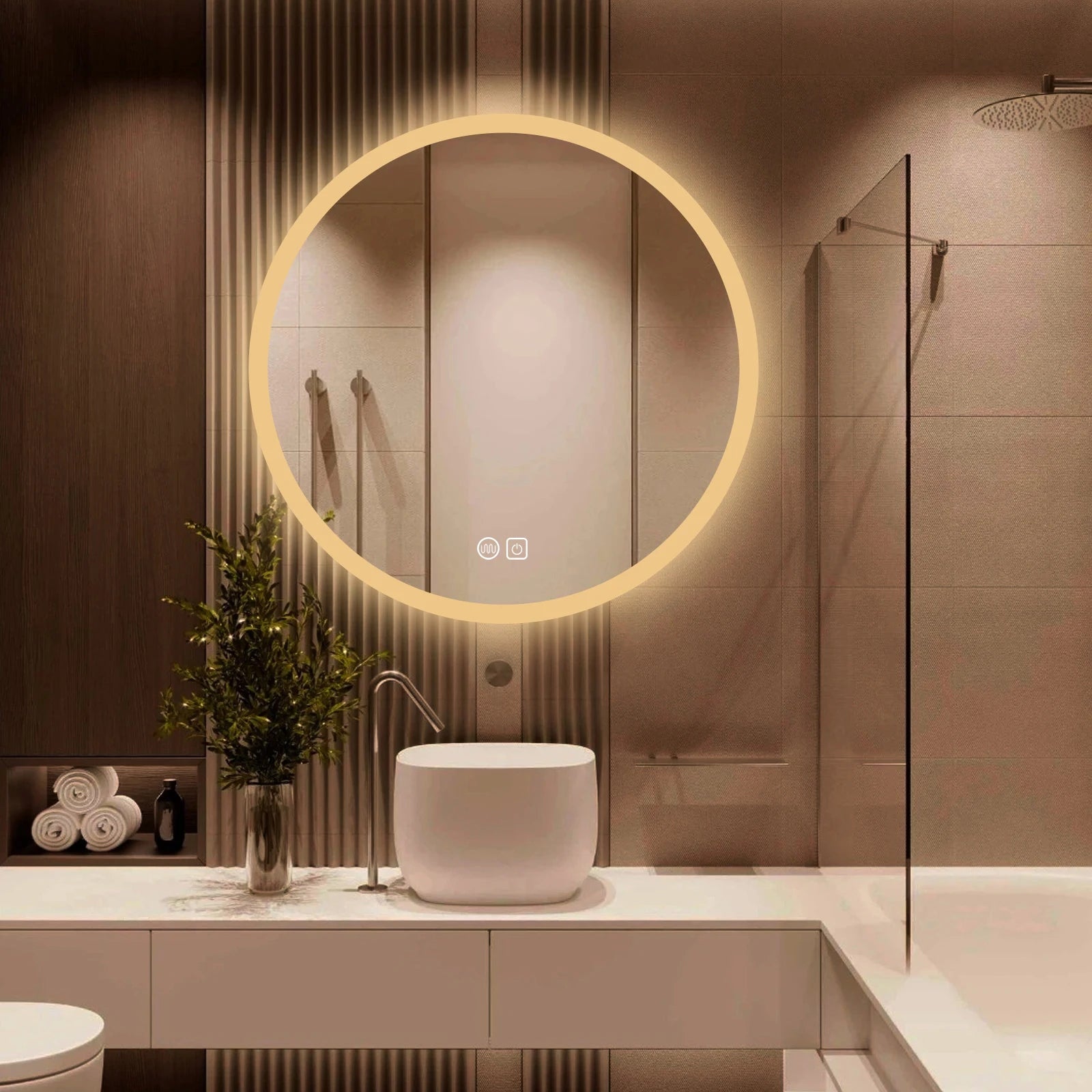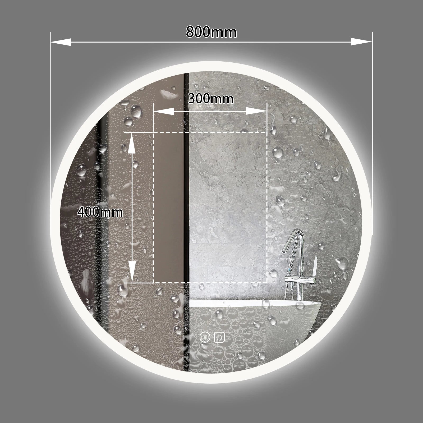 Round Bathroom Mirror with LED Lights Wall-mounted Anti-fog Mirror Light Touch Switch Color Temperature Adjustable Stepless Dimm