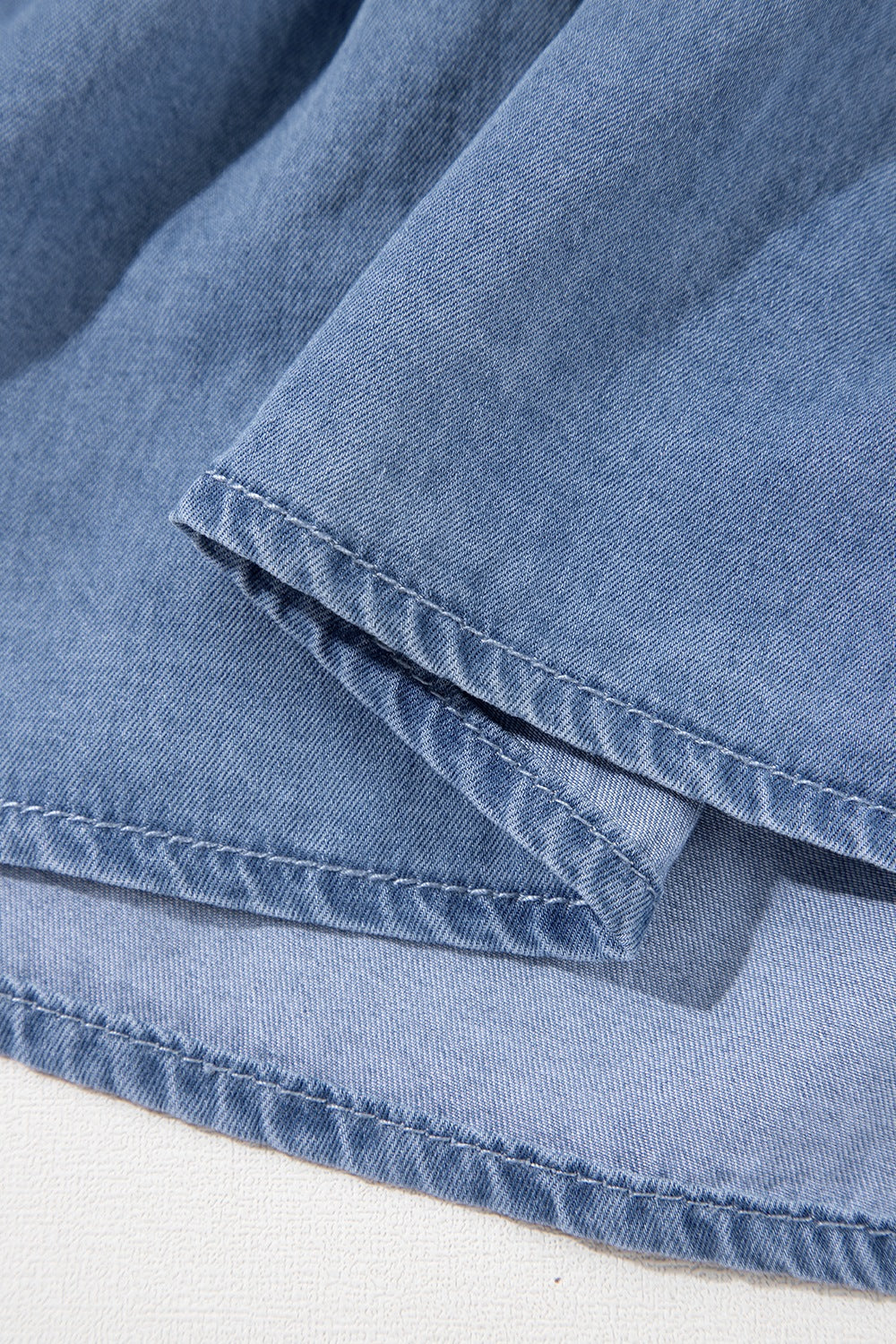 Ruffled Hem Smocked Flutter Sleeve Denim Mini Dress