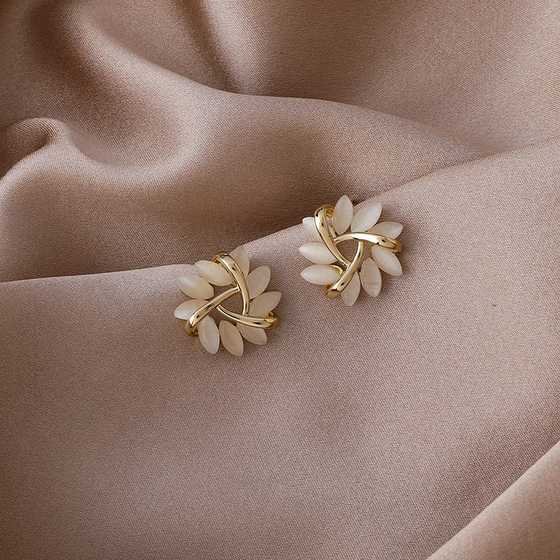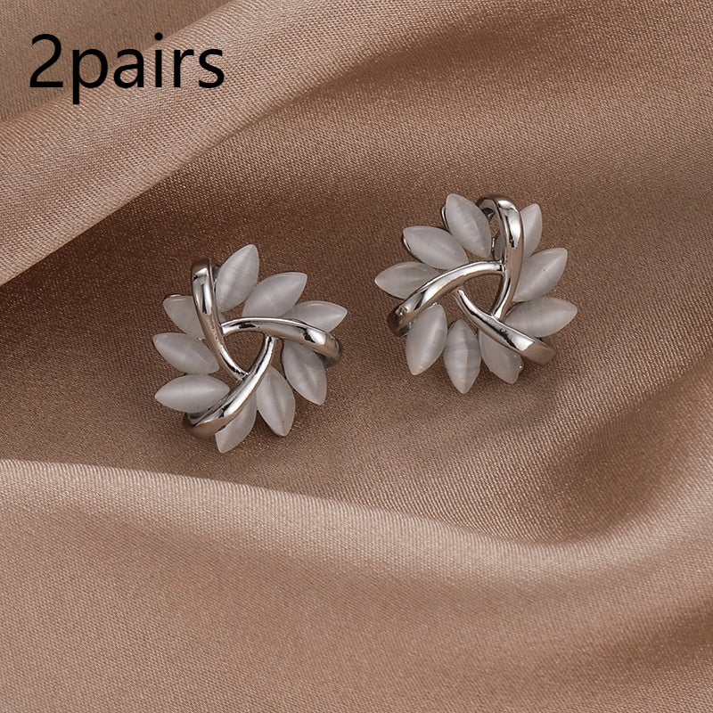 S925 Silver Needle Geometric Triangle Opal Stud Earrings Women