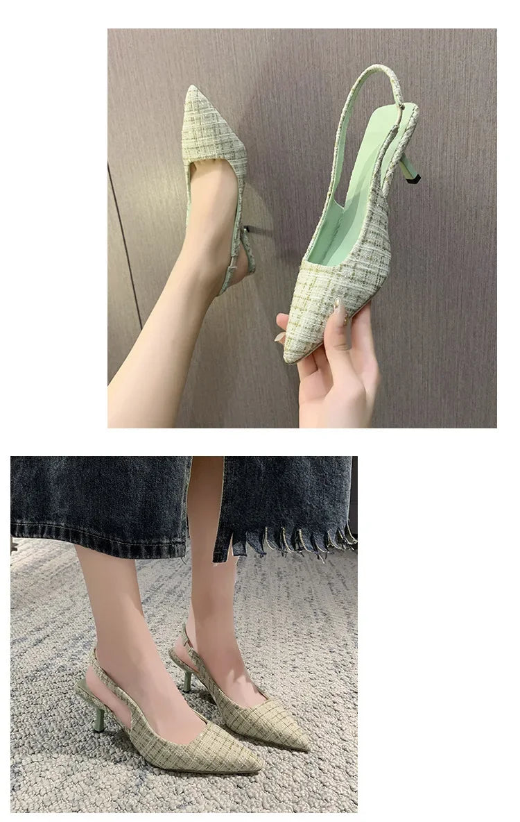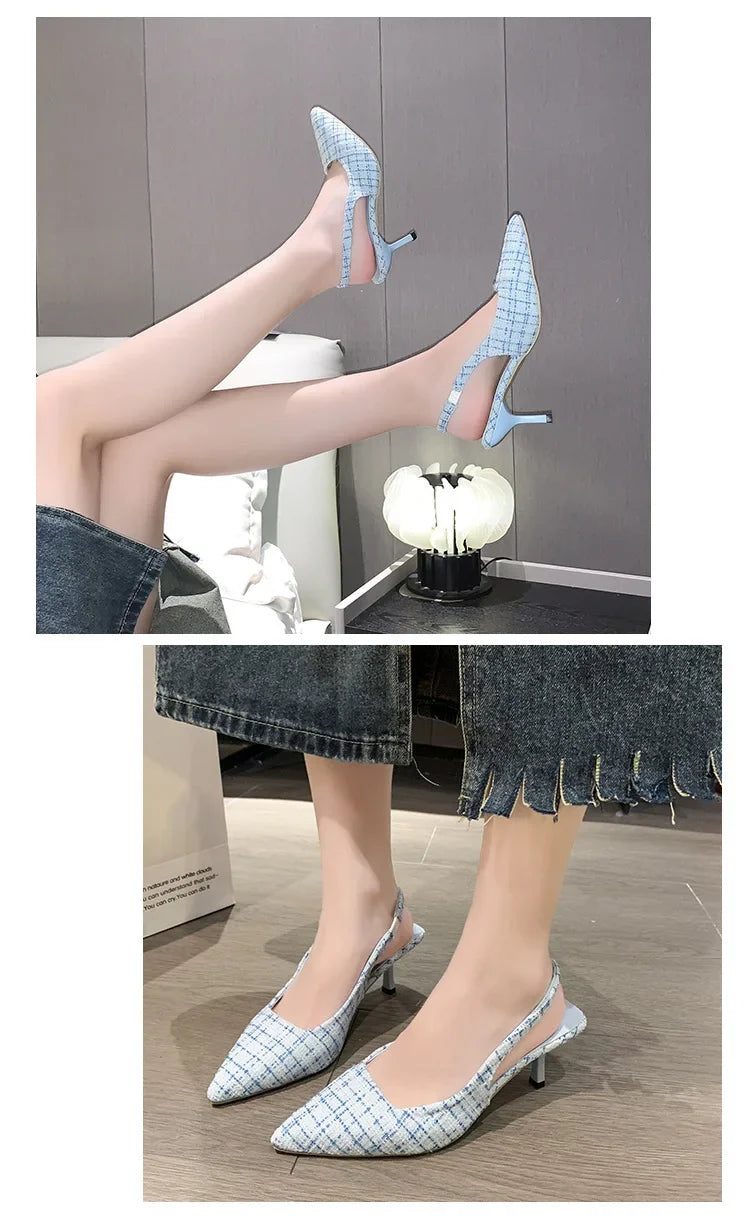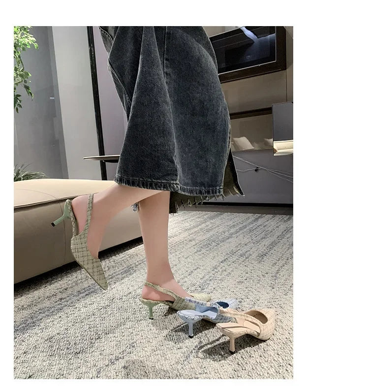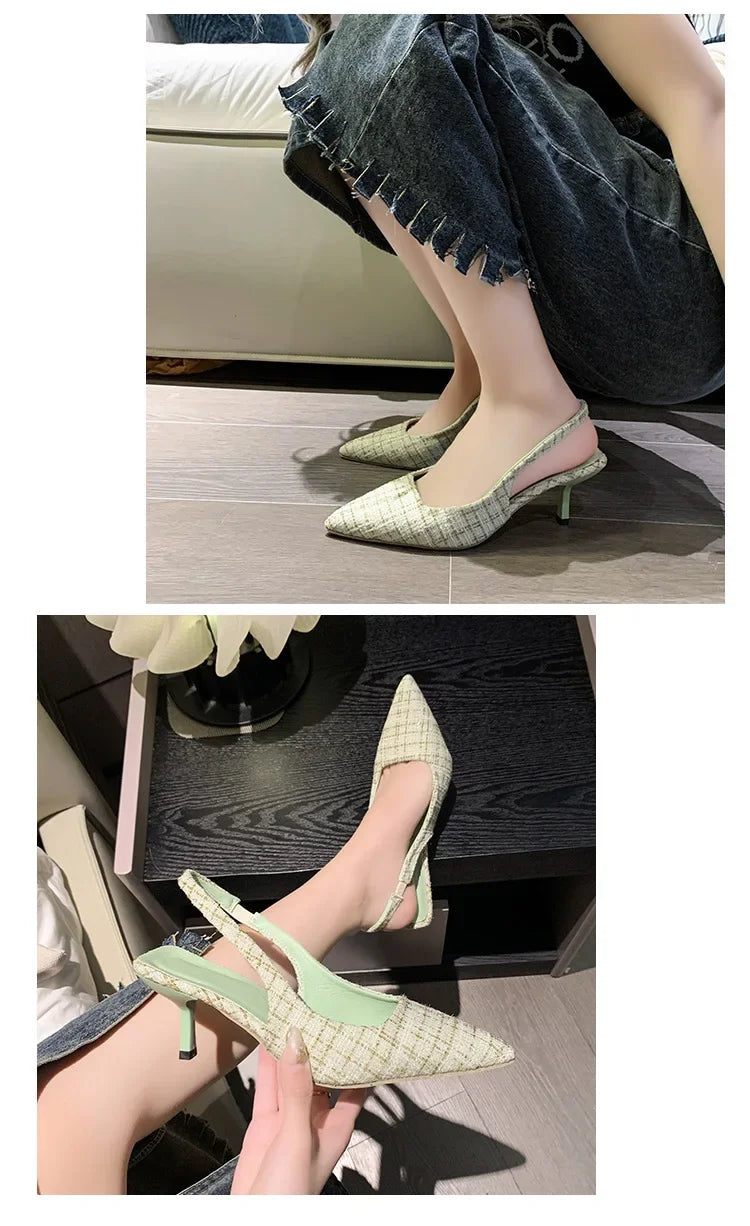 Sea Salt Blue Pointed High Heel Sandals for Women Back Hollow Half Headed Single Shoes Fashion Versatile Casual Shoes