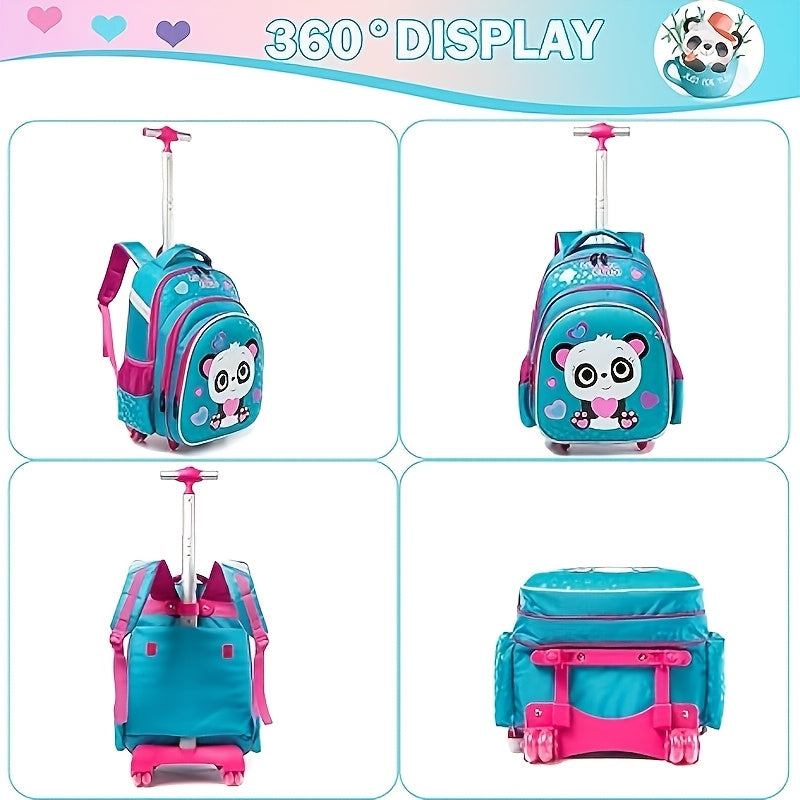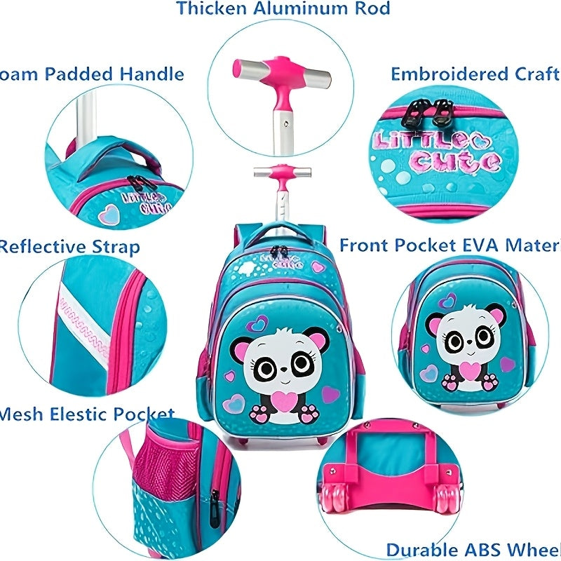 Set Panda Children's Student Rolling Backpack, Shoulder Bag, and Pencil Case Set,