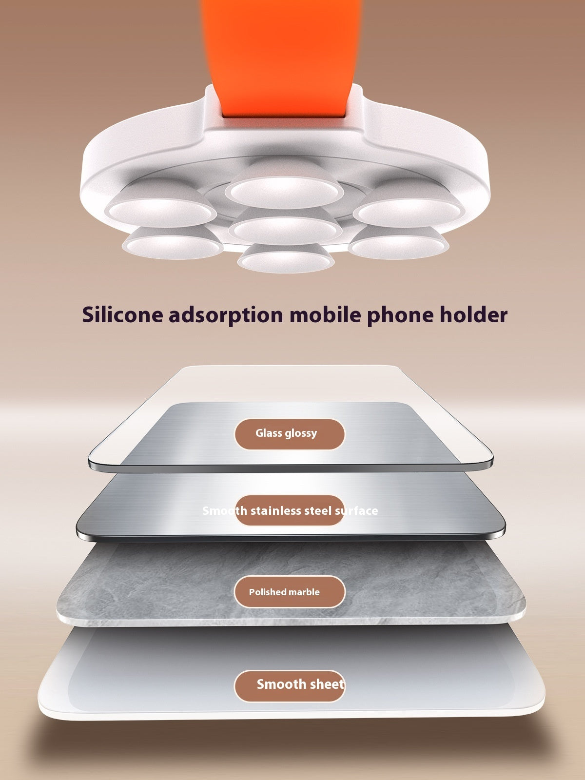2. Independent suction cup design, firmly and stably adsorb the mobile phone on a smooth plane;