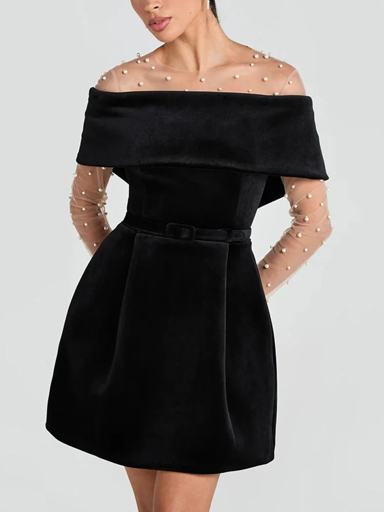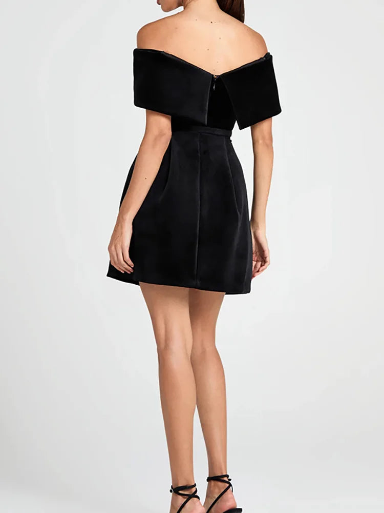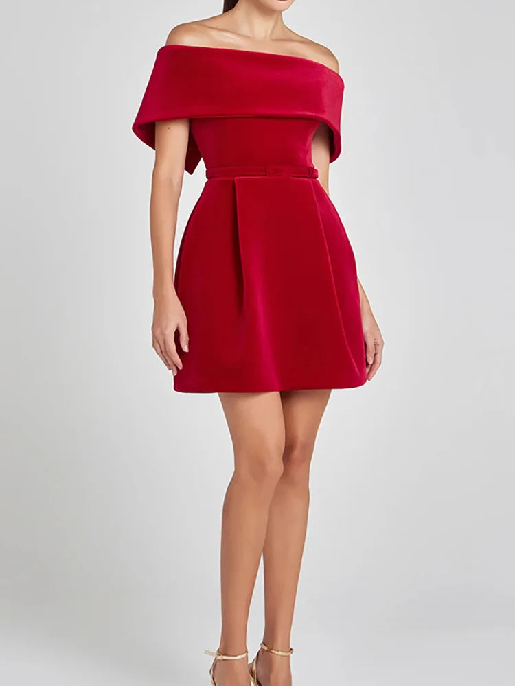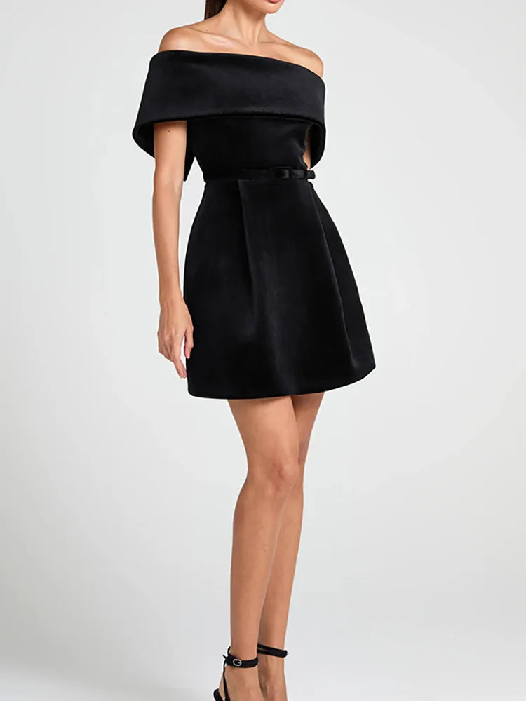 Slash Neck Off The Shoulder Solid Mini Dress, Women Spring Summer Patchwork Simple Party Dress, 2024 Short Sleeve Ladies Dress