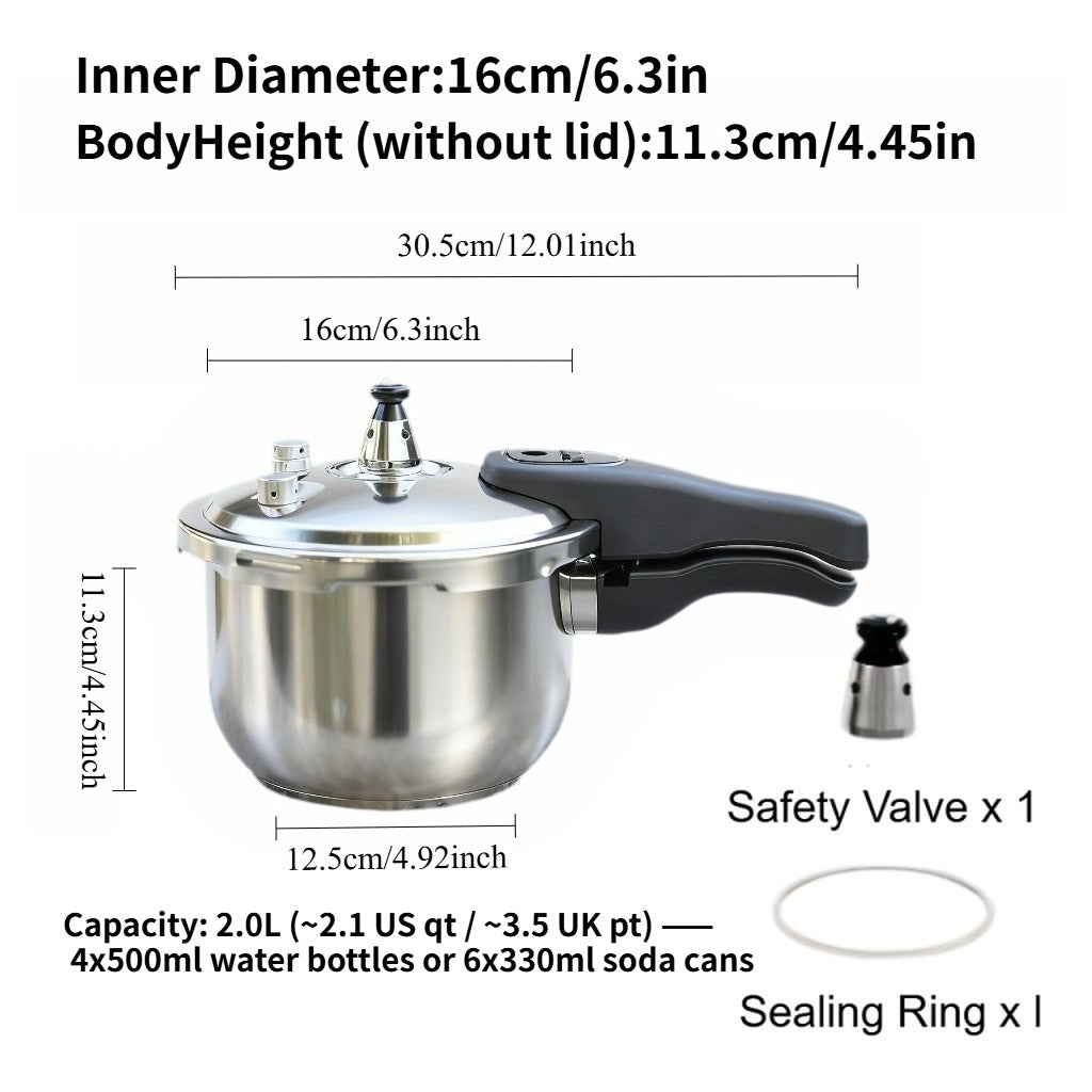Small Pressure Cooker 2L, 5-Way Safety System & High Quality, Thick Base Easy Cleaning