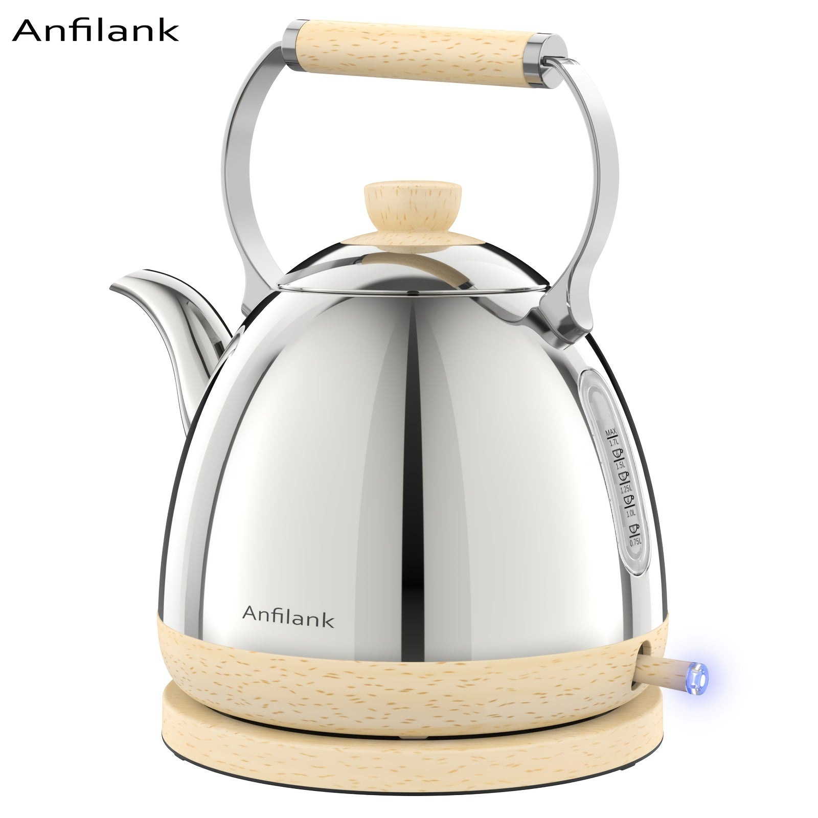 Stainless Steel Electric Kettle | 1500W Silver Wood Grain Design, Fast Boil, Anti-Dry Burning,