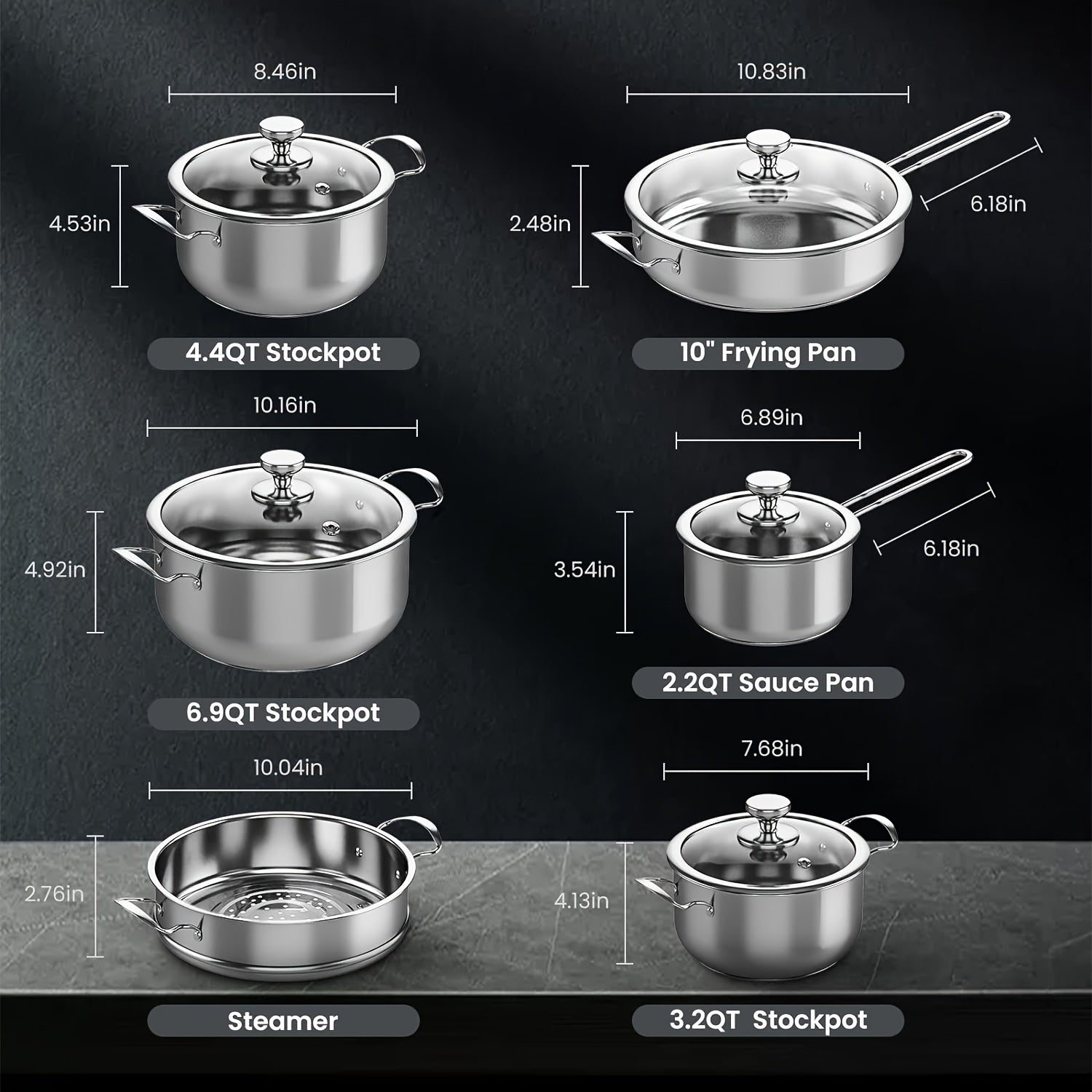 Stainless Steel Pots And Pans Set, 11-piece Induction Cookware Set With Steamer,