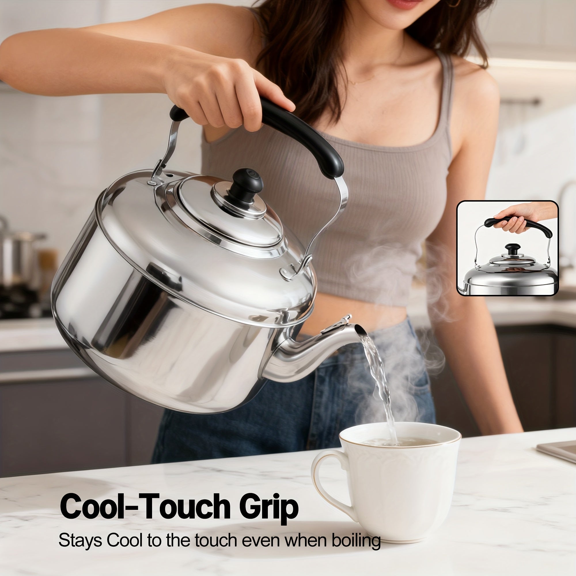 Stainless Steel Tea Kettle with Cool-Touch Handle, Classic Whistle All Stove Compatible,