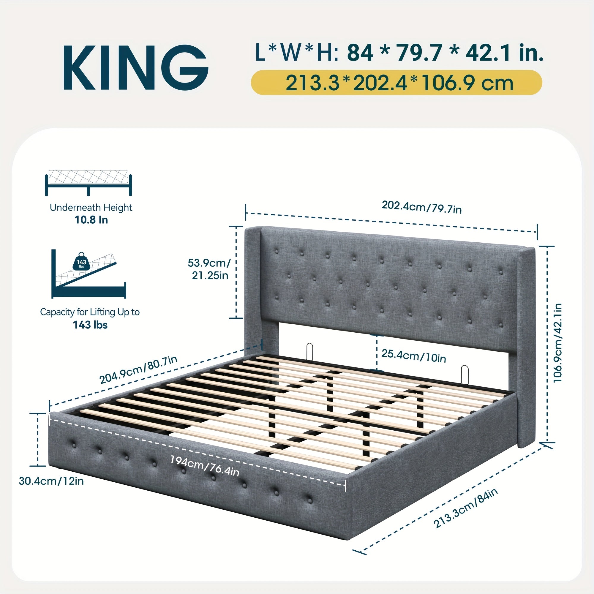 Storage Bed, Modern Wingback Upholstered Headboard, Hydraulic Platform Bed, Wooden
