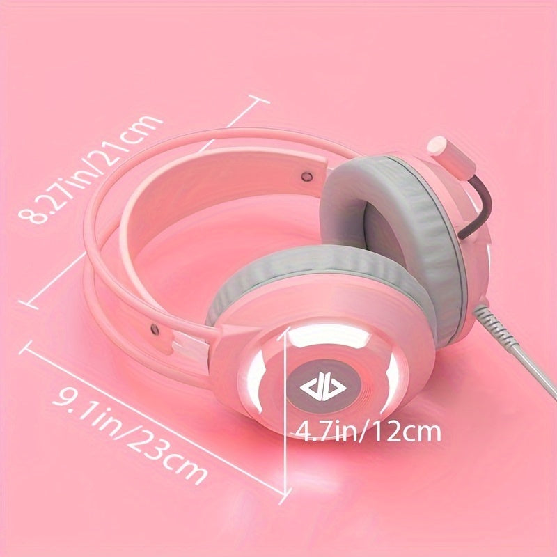 Surround Sound Wired Gaming Headset with 50mm Large Drivers, Noise-Isolating, USB/3.5mm, Pink/White