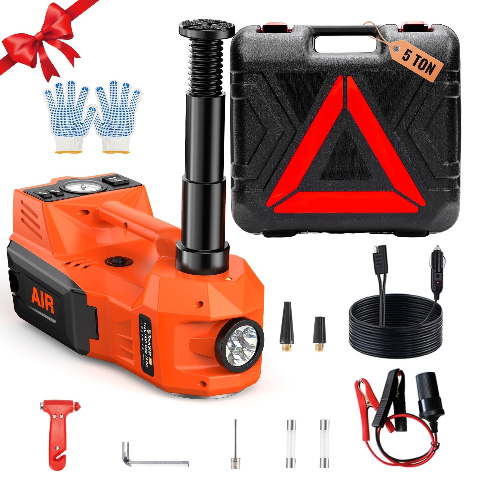 TaskStar Pro Heavy-Duty 12V Hydraulic Jack 2267.96KG with Air Compressor & LED, Emergency Tire Change