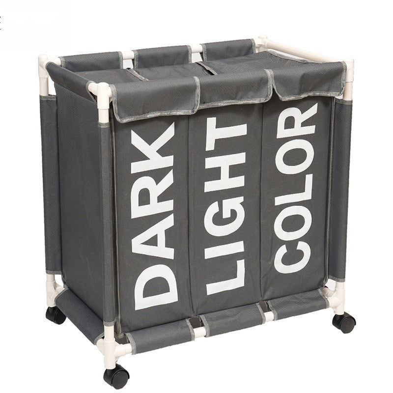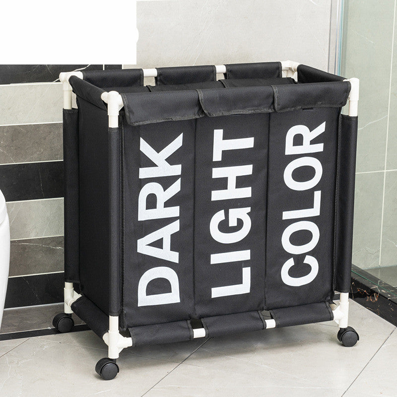 Three-compartment Laundry Storage Basket With Pulleys, Moisture-proof Folding Dirty Clothes Lou