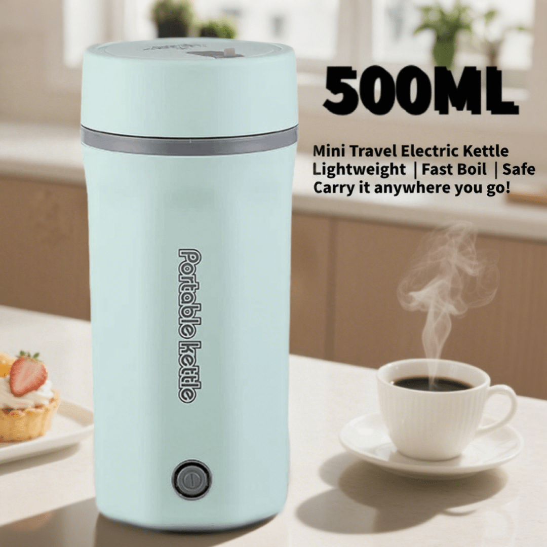 Travel Electric Kettle Portable Mini Kettle, 500ML Small Hot Water Boiler, 304 Stainless Steel,