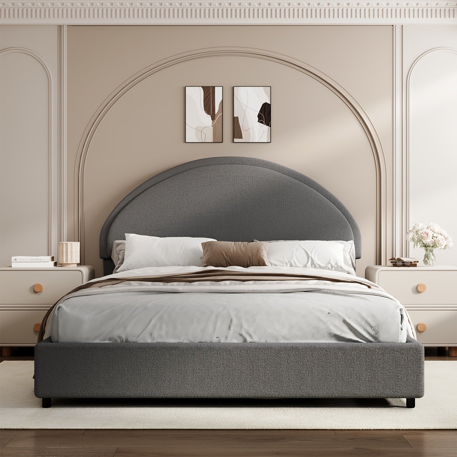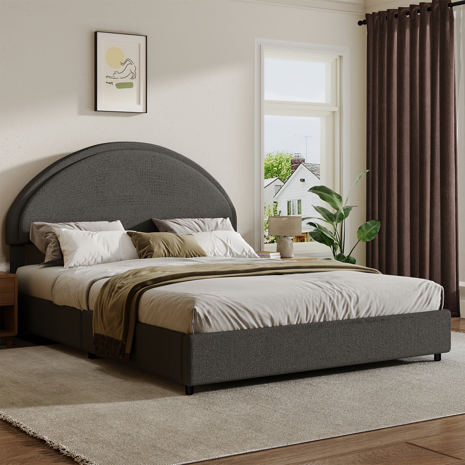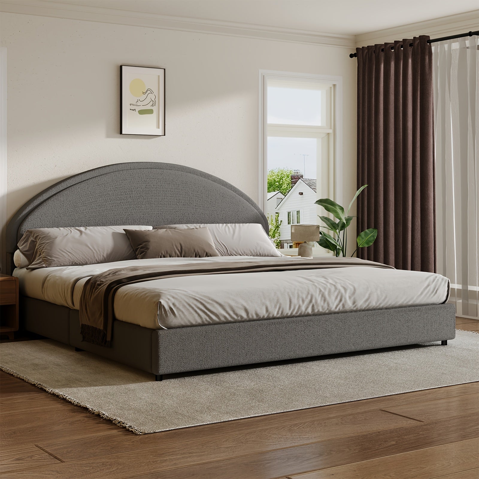 Twin/Full/Queen/King Bed Frame with Boucle Upholstered Headboard - Modern Platform Bed