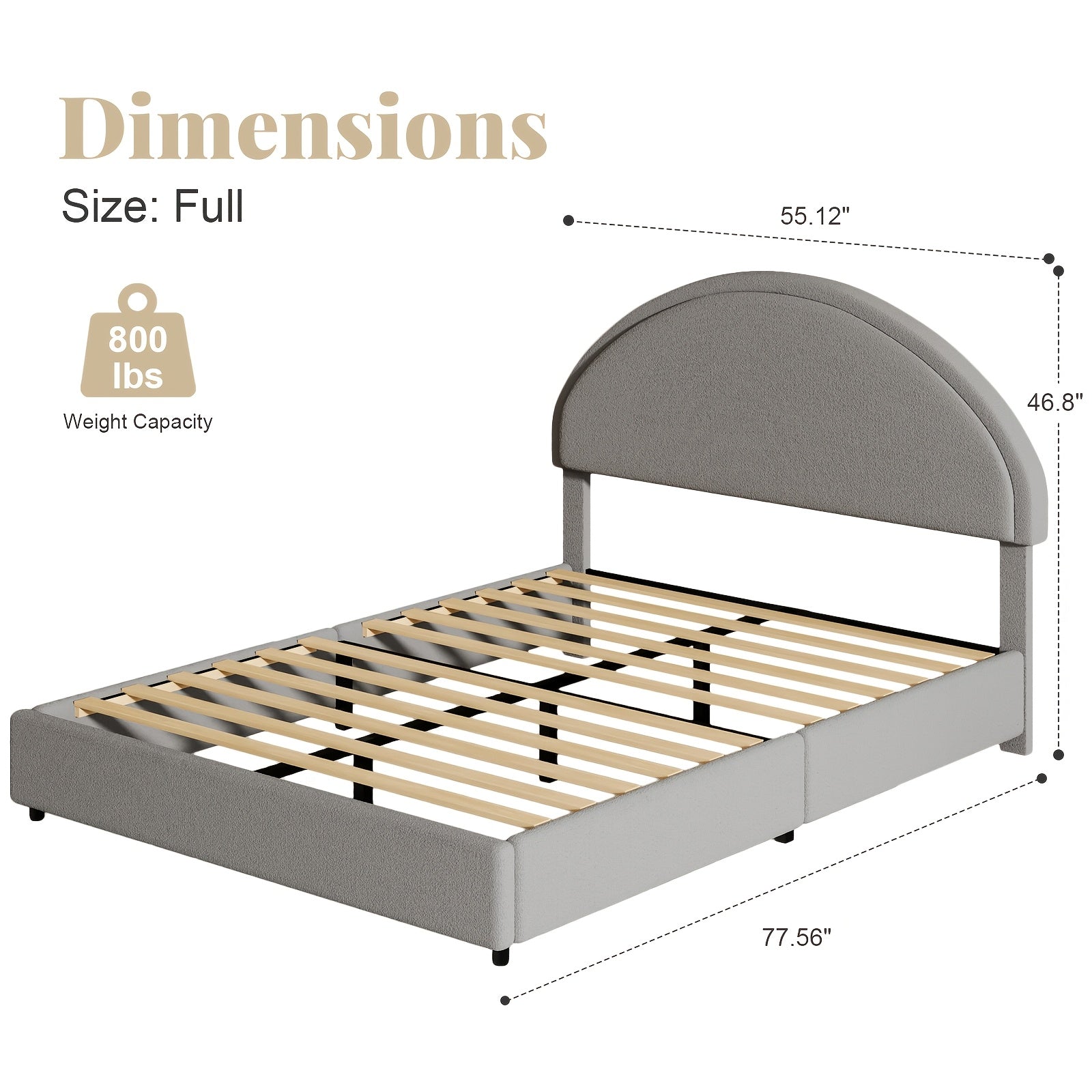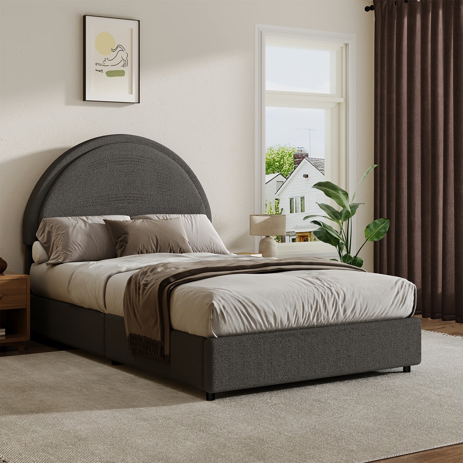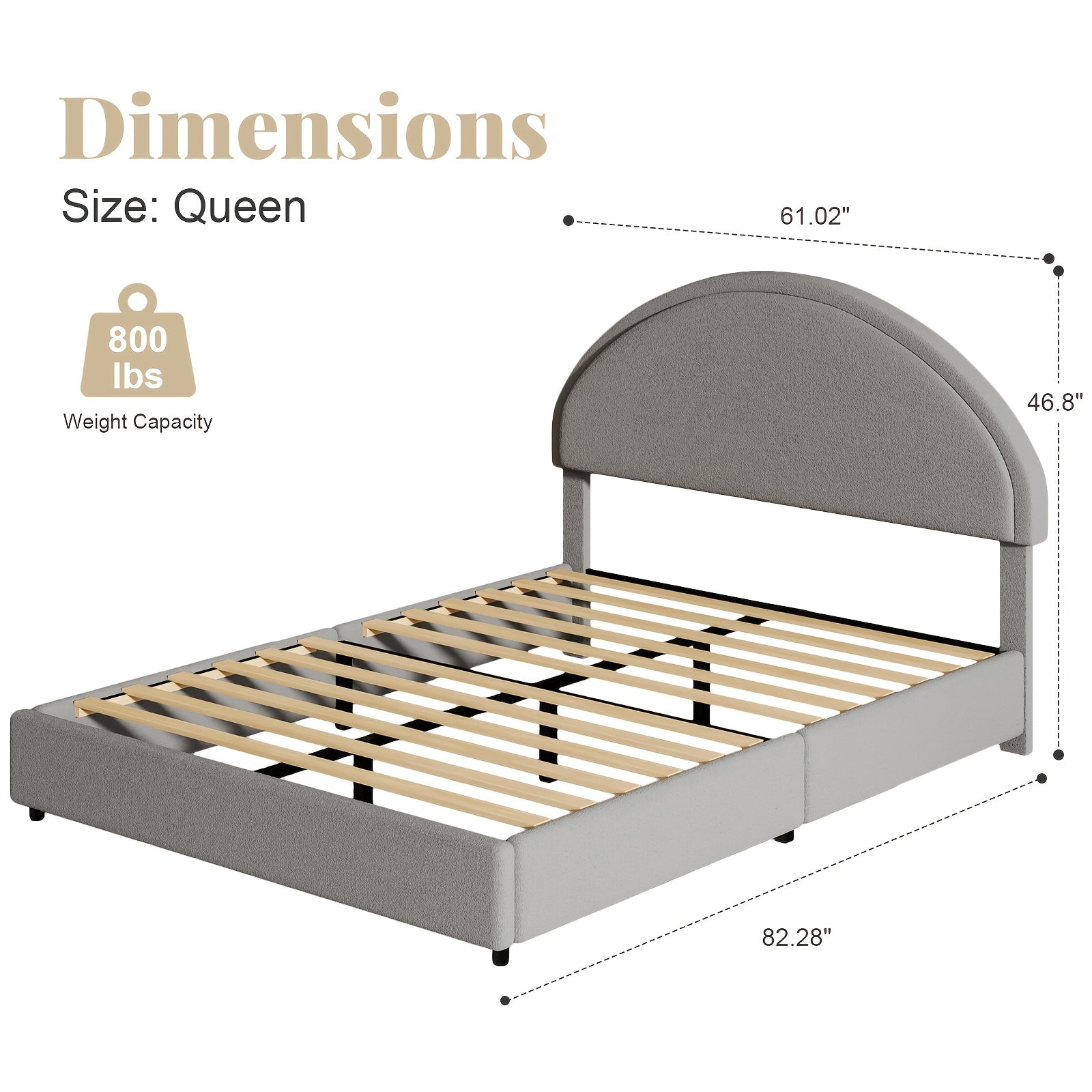 Twin/Full/Queen/King Bed Frame with Boucle Upholstered Headboard - Modern Platform Bed