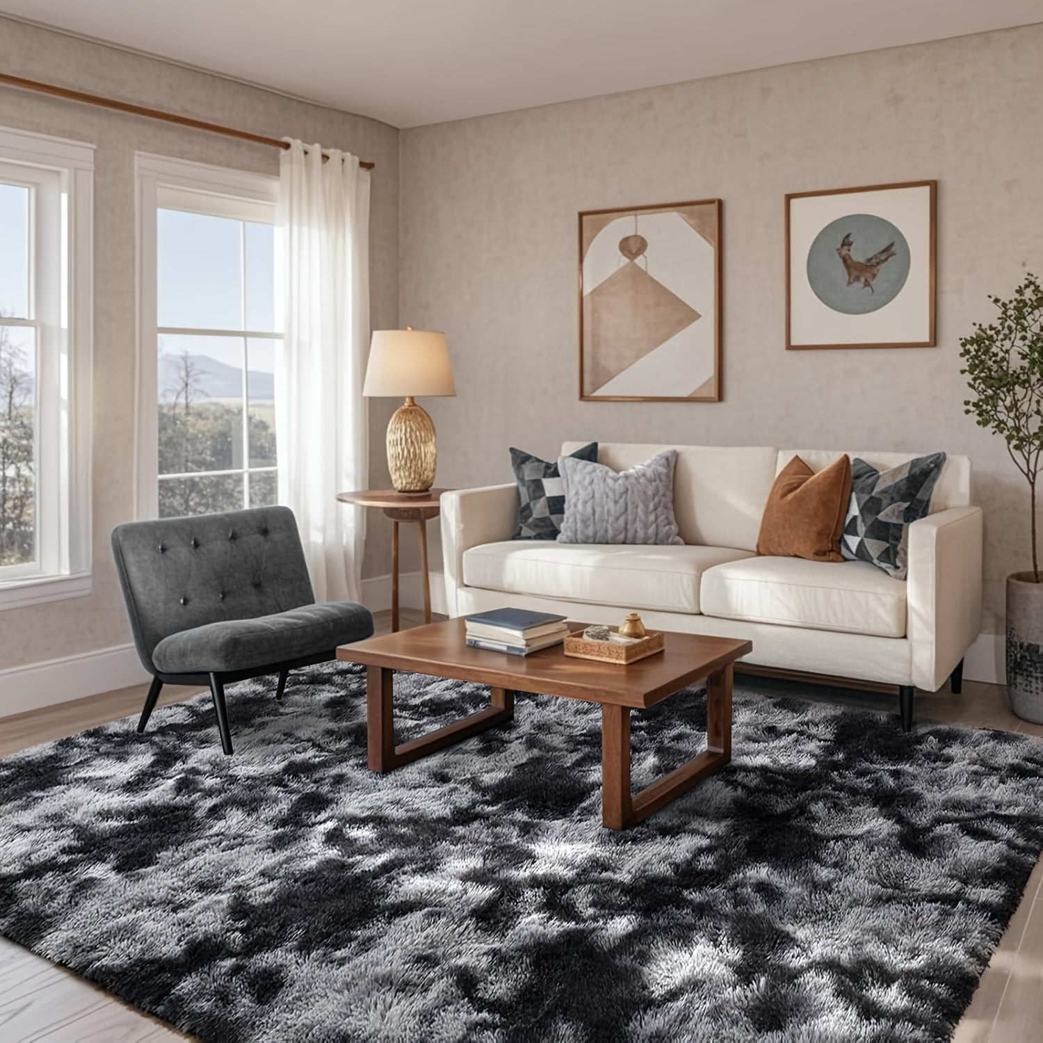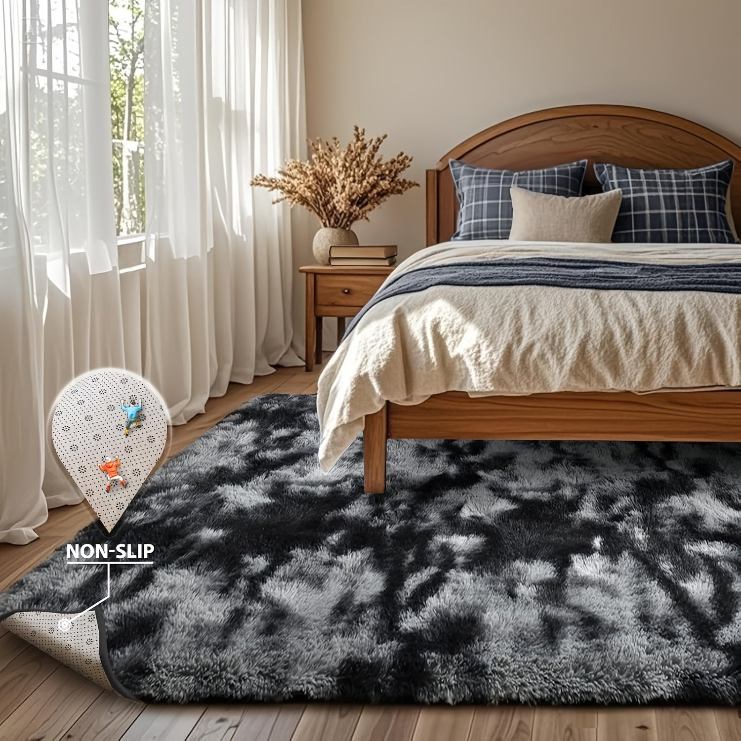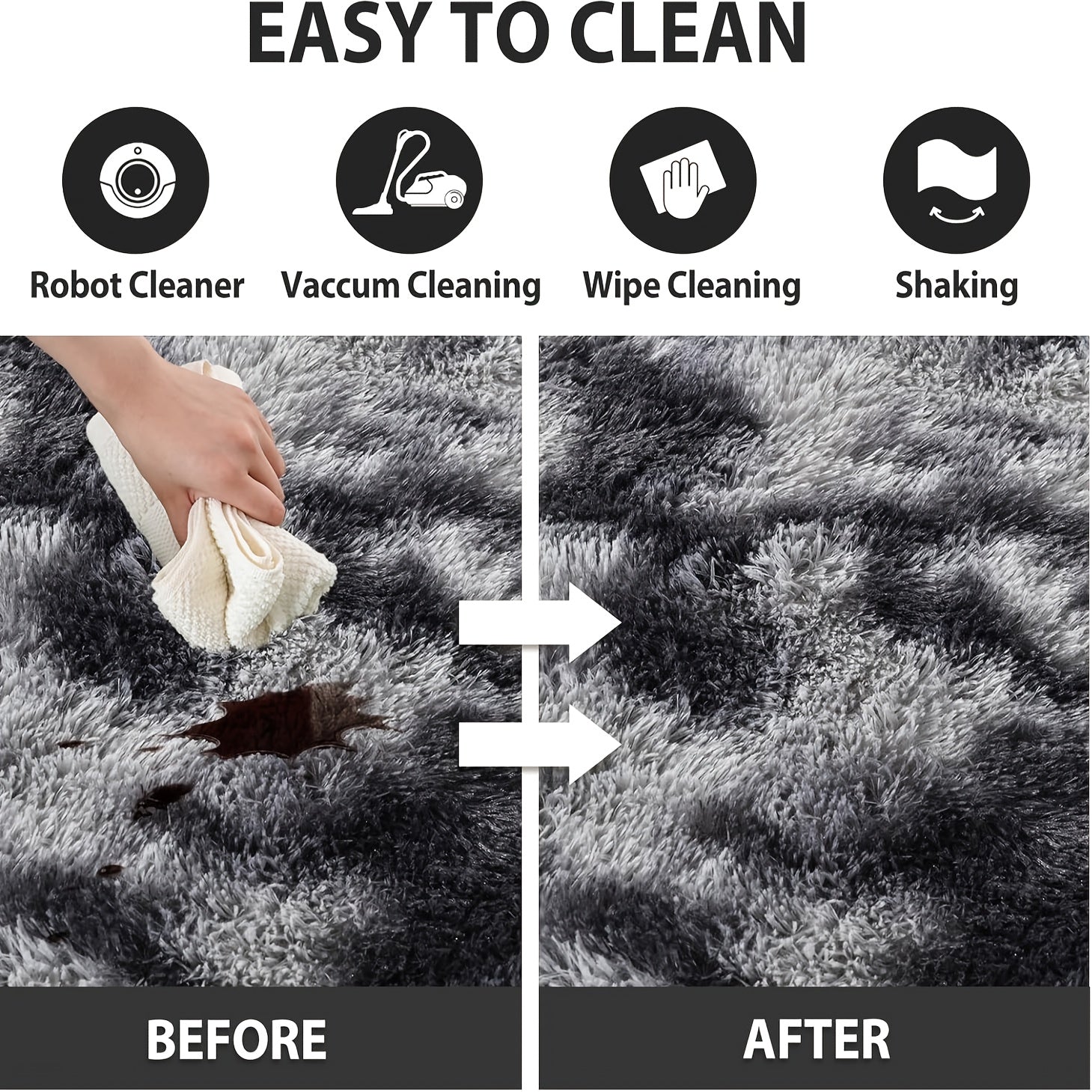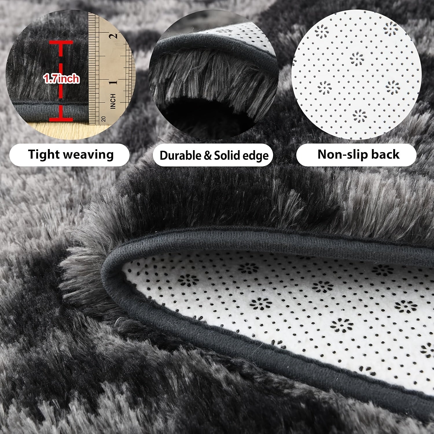 Ultra-Soft Tie-Dye Dark Gray Area Mat - Thick Plush Mat, Suitable for Living Room and Bedroom Decor, Fluffy Indoor Mat, Square