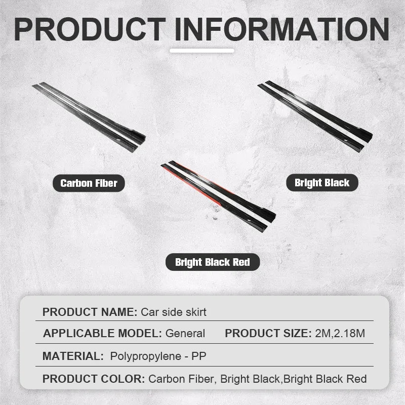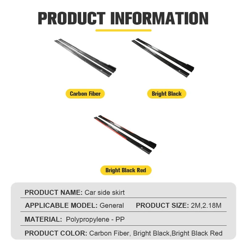 Universal 8PCS 2m/2.18m Side Skirt Extension Rocker Plate Lip Separator Bumper For BMW Mercedes-Benz Toyota Audi Nissan Honda