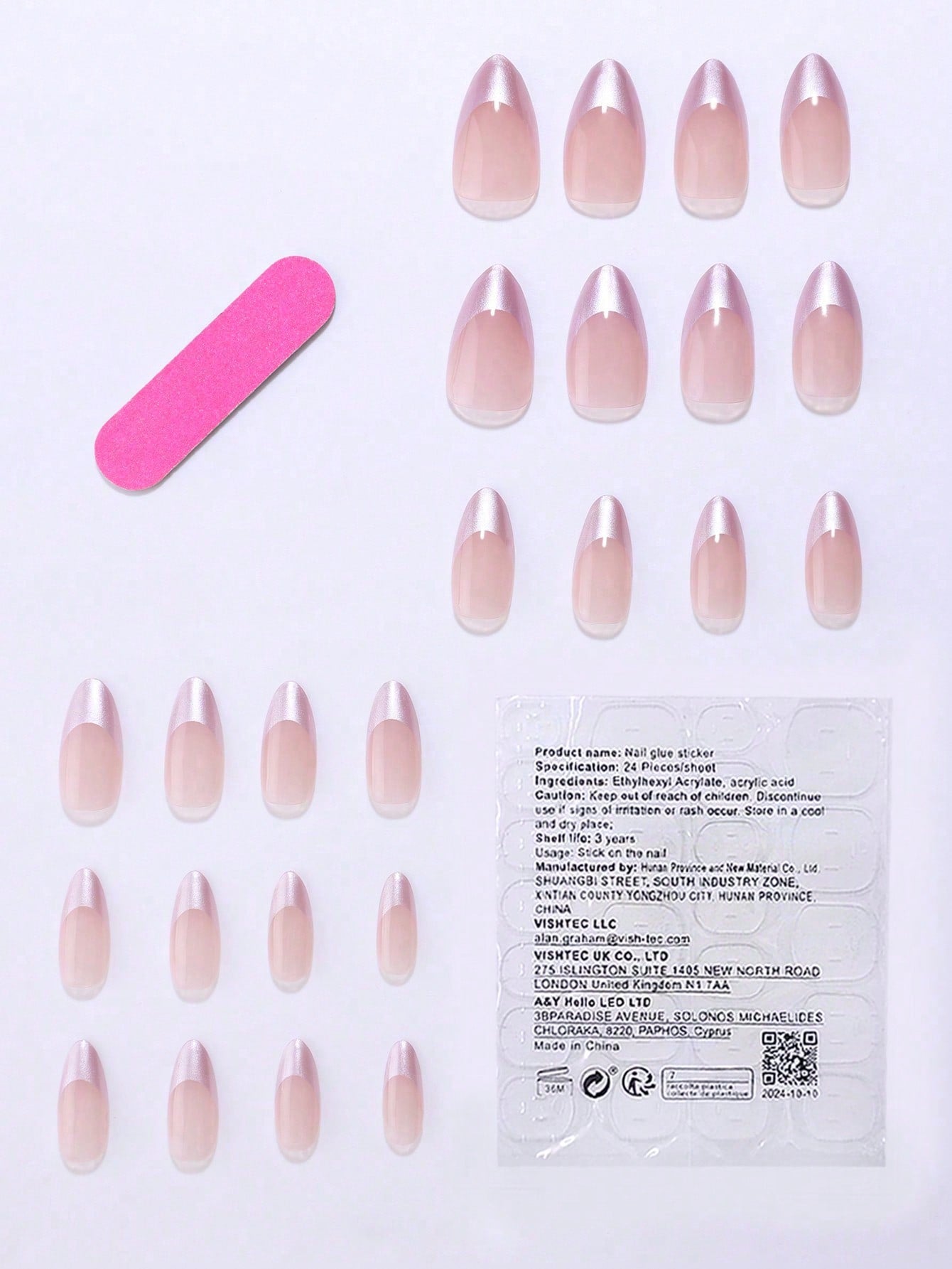 24 pièces de faux ongles courts et carrés, au rose vibrant ado,