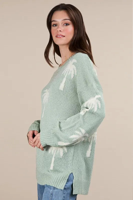 VERY J Palm Tree Graphic Oversized Knit Sweater