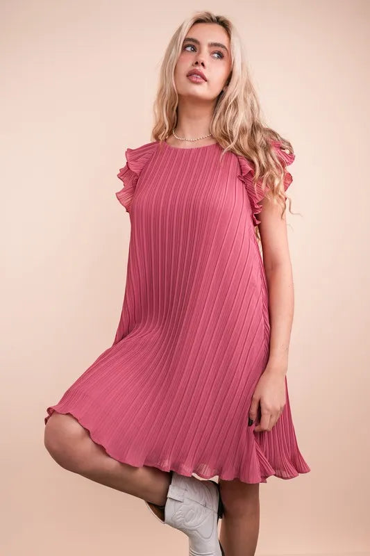 VERY J Plus Size Ruffle Sleeve Pleated Woven Mini Dress