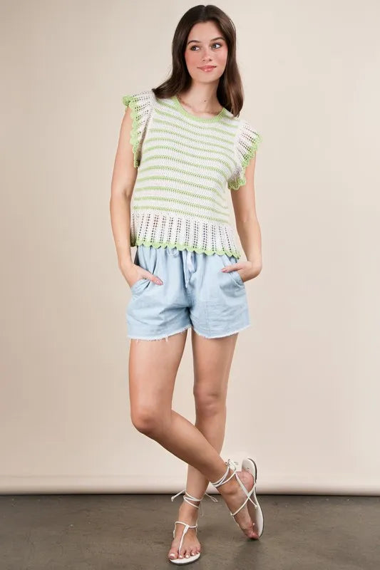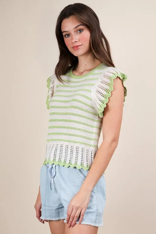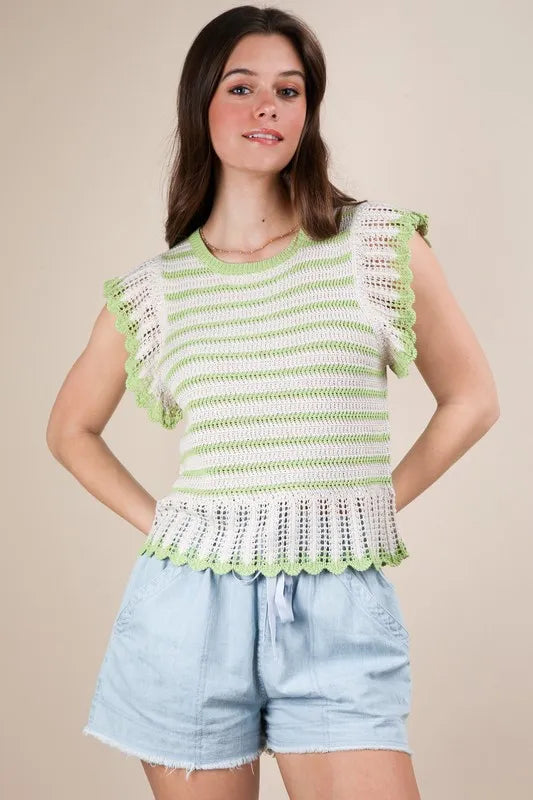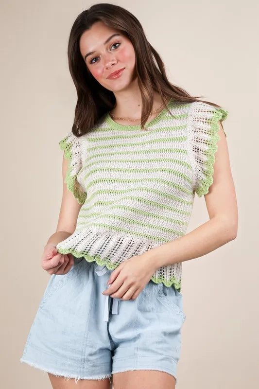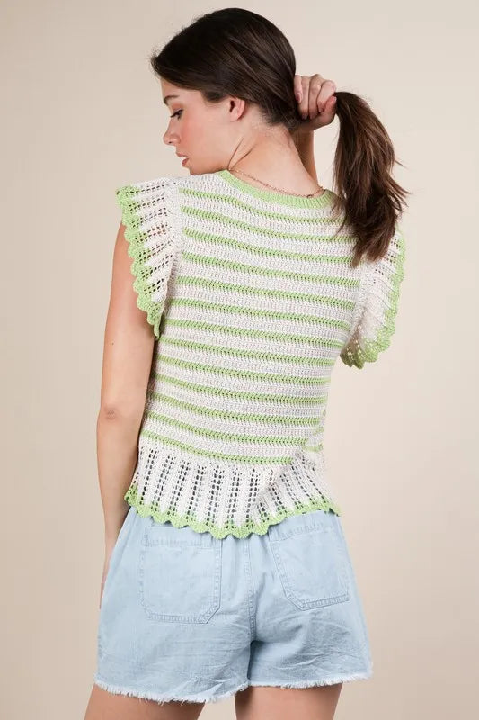 VERY J Ruffle Detail Striped Knit Sweater Top