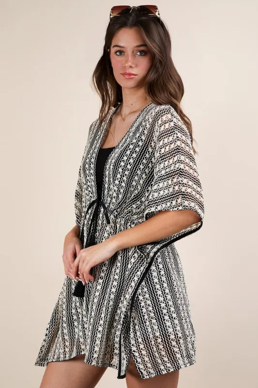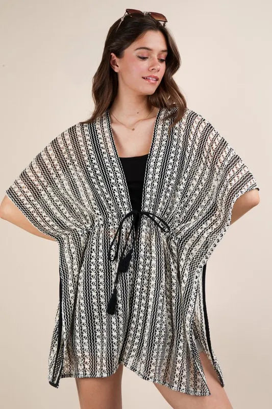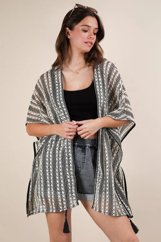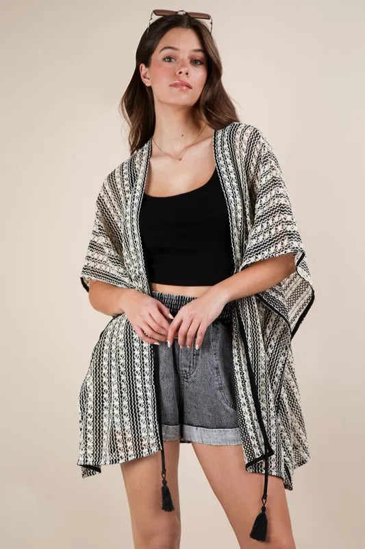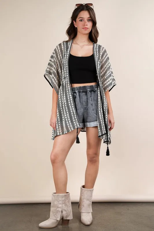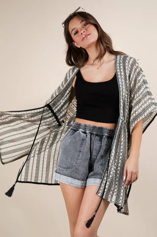 VERY J Striped Poncho Boho Cardigan