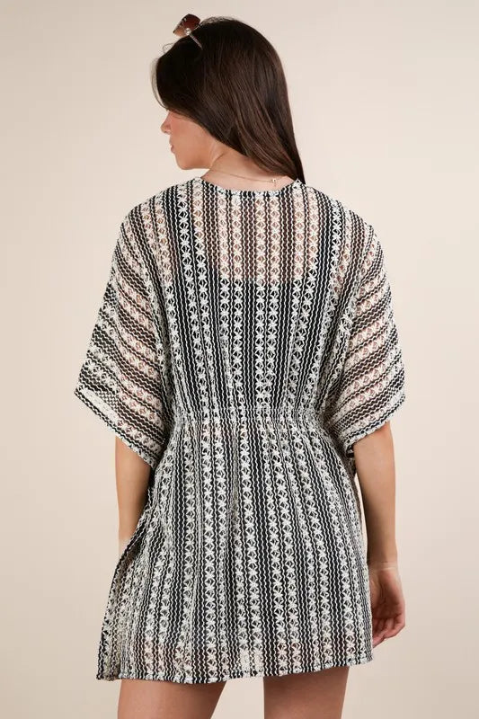 The striped poncho boho cardigan is a versatile and stylish layering piece. Its bohemian-inspired design adds a touch of flair to any outfit. Perfect for creating a relaxed and chic look with a cozy feel.