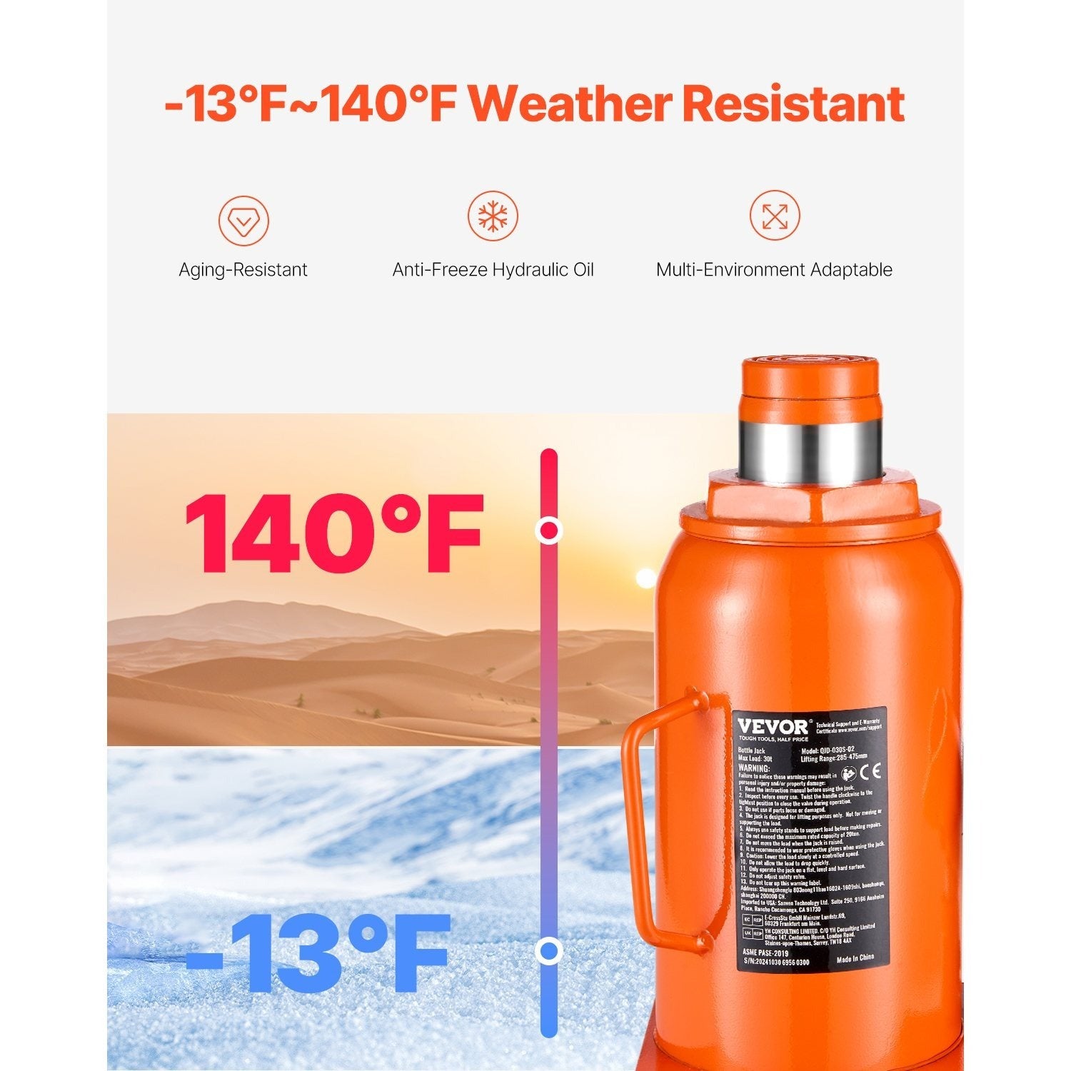 VEVOR Hydraulic Bottle Jack 30 Ton Manual High Lift Automotive Car Repair Shop