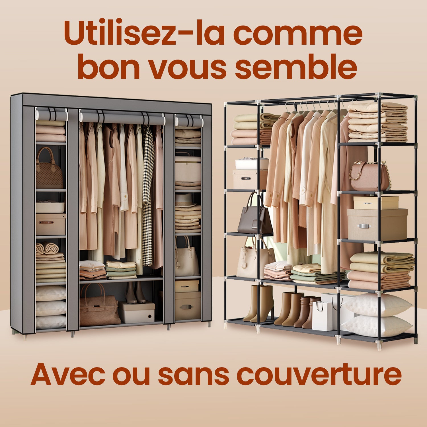 Wardrobe Closet, Storage Cabinet for Bedroom, Clothing Rack with Fabric Cover, Clothing Storage