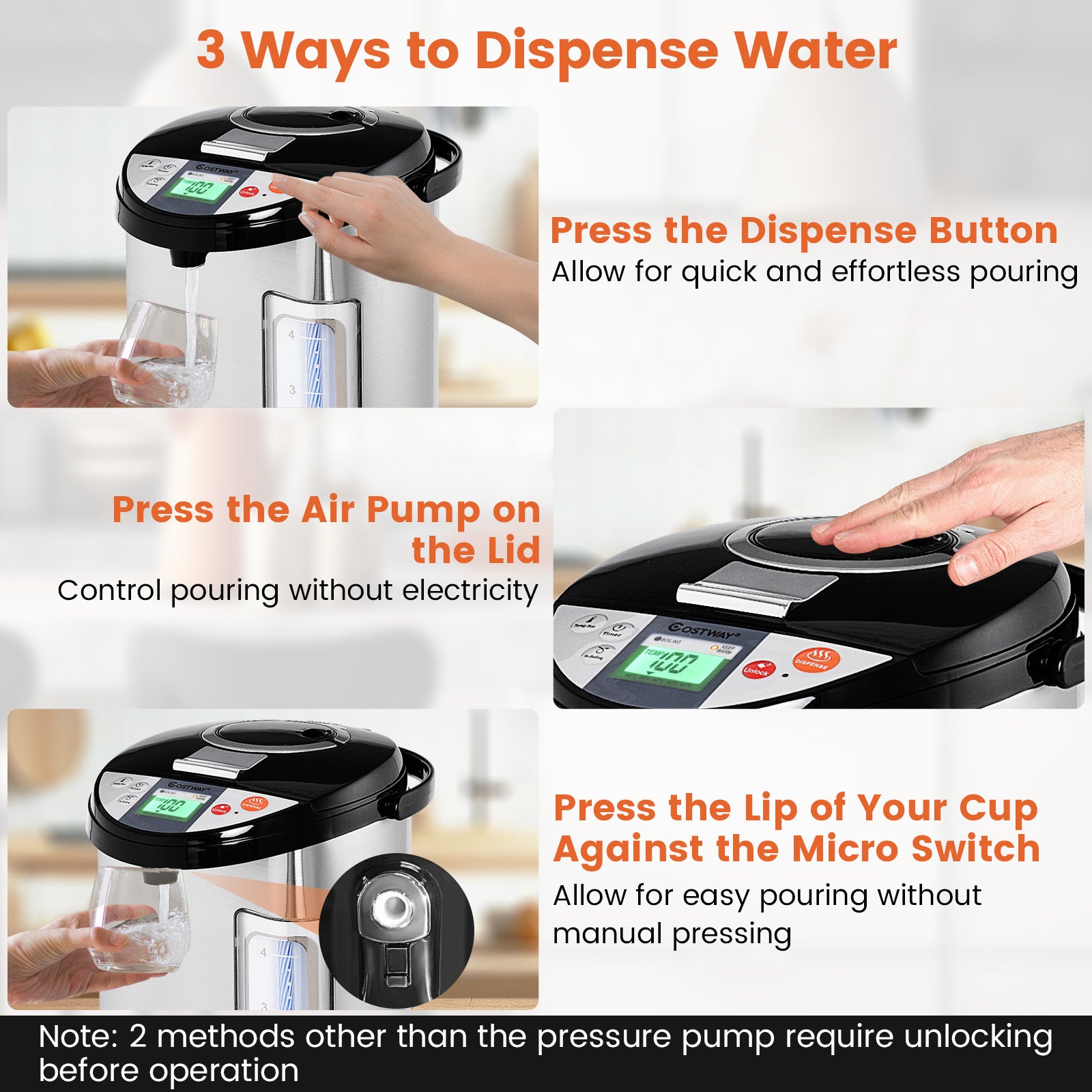 Water Boiler and Warmer, 5.28 Qt Stainless Steel Hot Water Dispenser with Safety Lock,