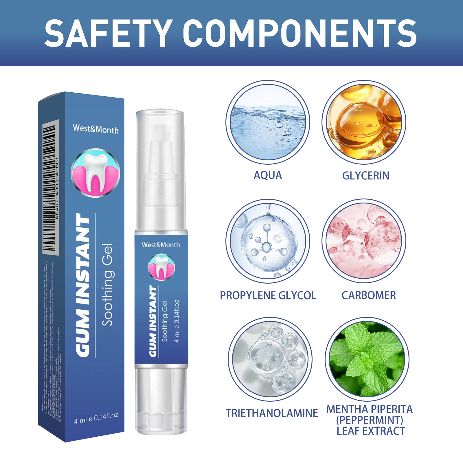 WestMonth Gum Instant Soothing Gel, Relieve Gums Swelling And Pain Clean Teeth Plaque Stains And Whiten Teeth Gel