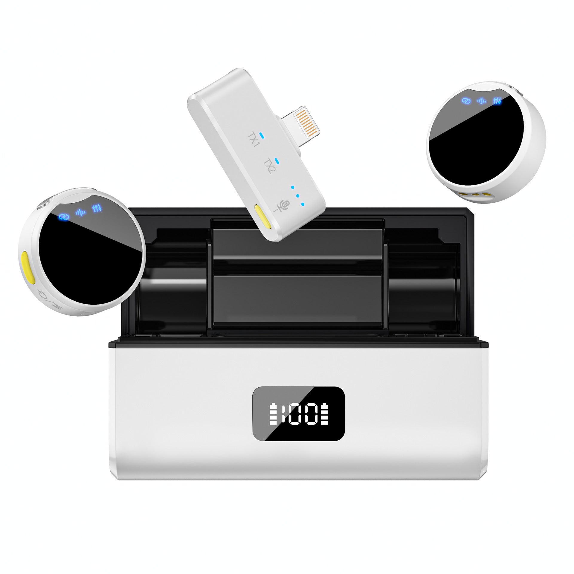 Wireless Collar Clip Microphone With Charging Bin Round One Drag Two Magnetic Button