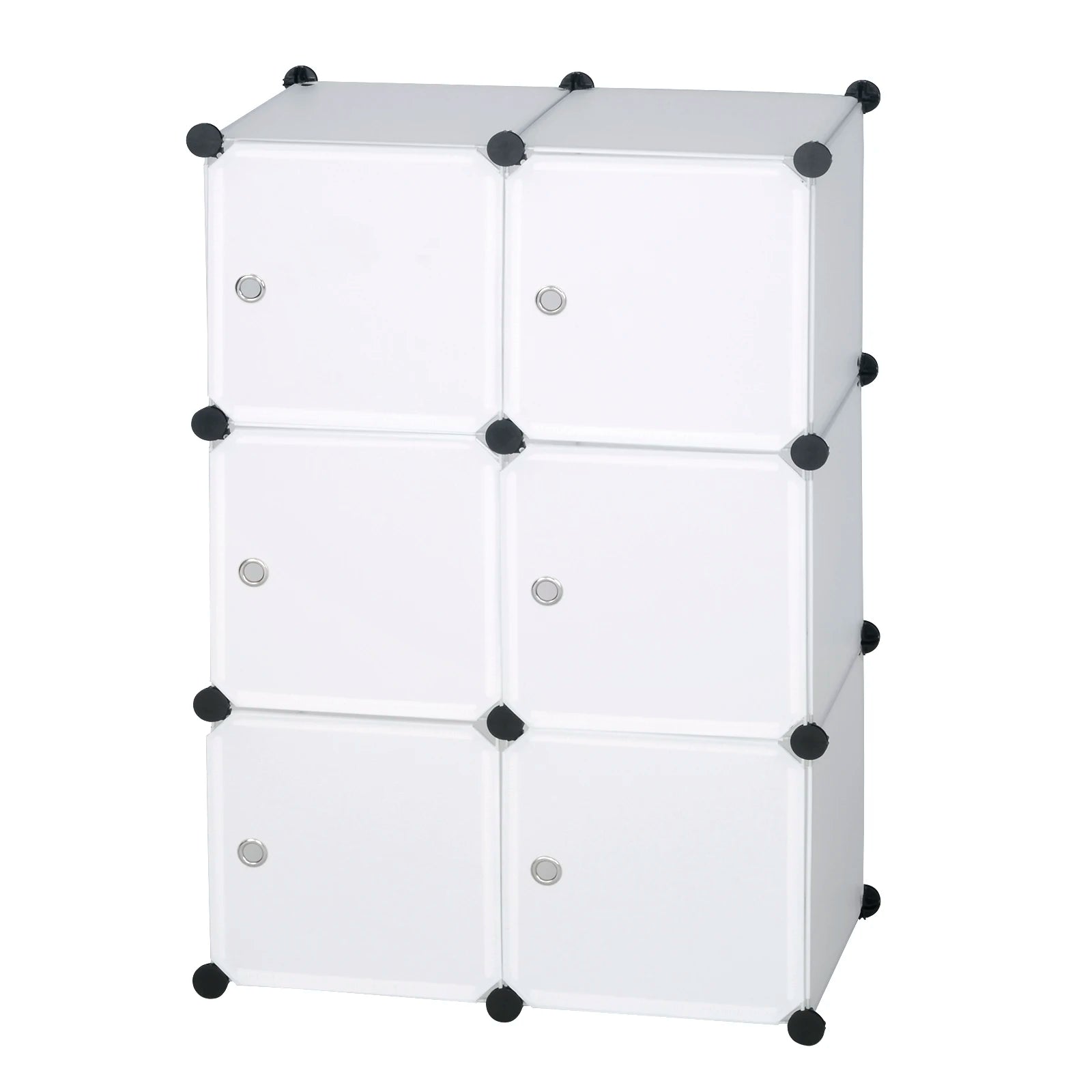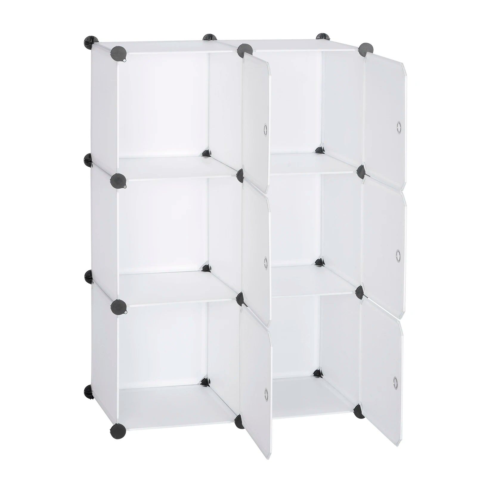 WOLTU DIY Wardrobe Plastic Storage Shelf 6 Compartments Bookcase with Door Storage Box Organizer Closet Cabinet for Bedroom