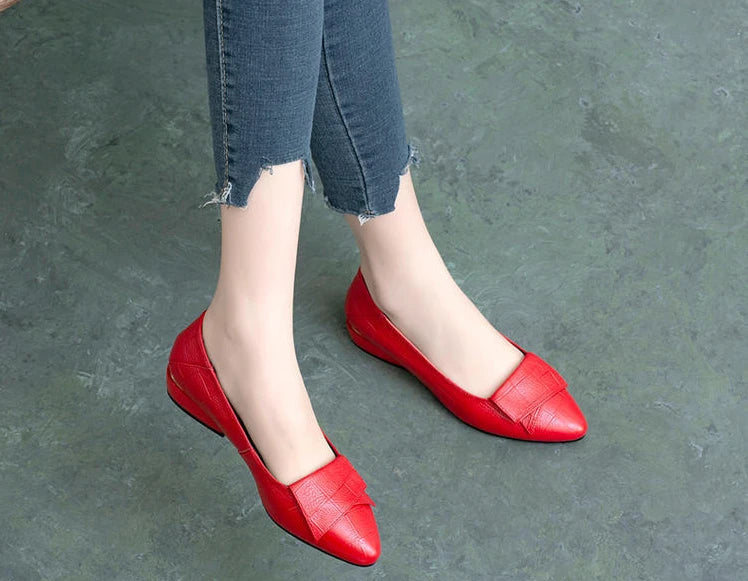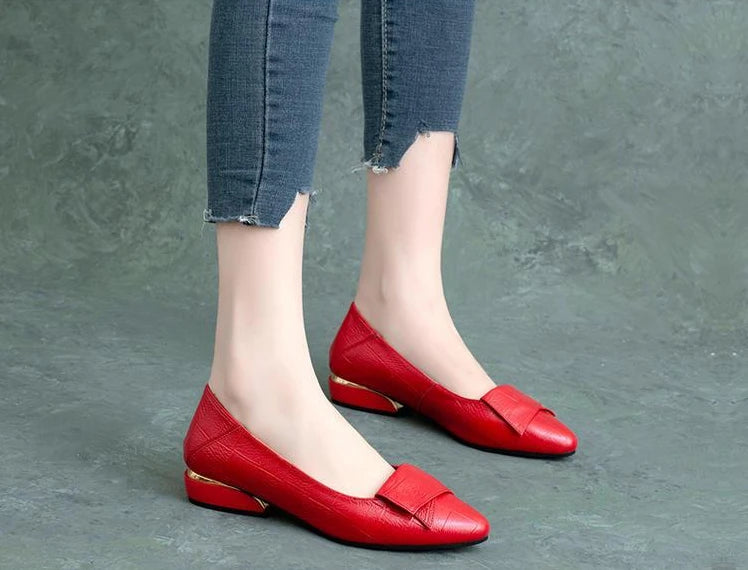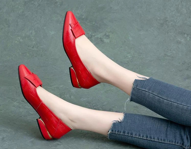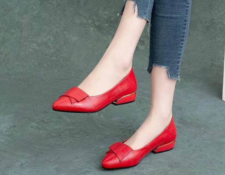 Woman Pumps Formal Low Heel Elegant Red Shoes For Women Moccasins Pointed Toe Y2k Premium Offer High Quality Social On E A