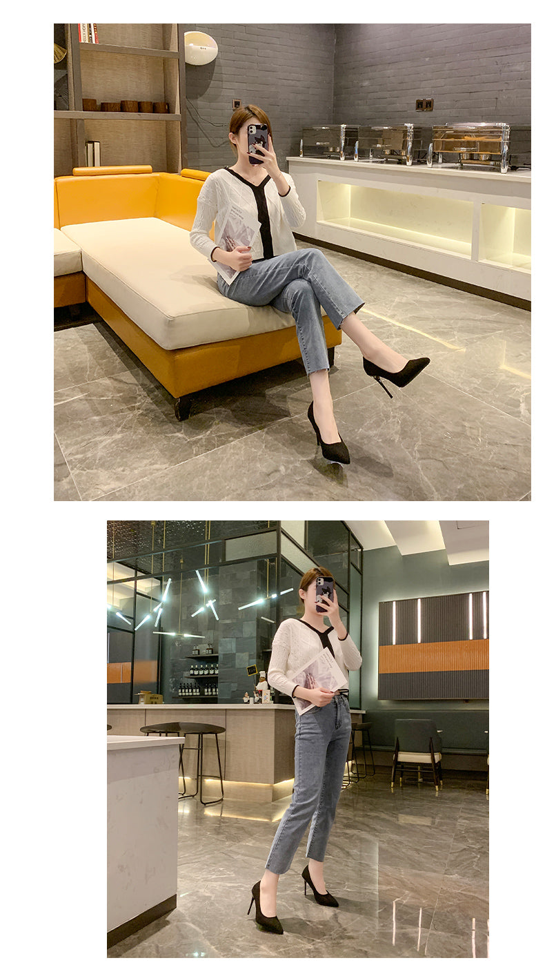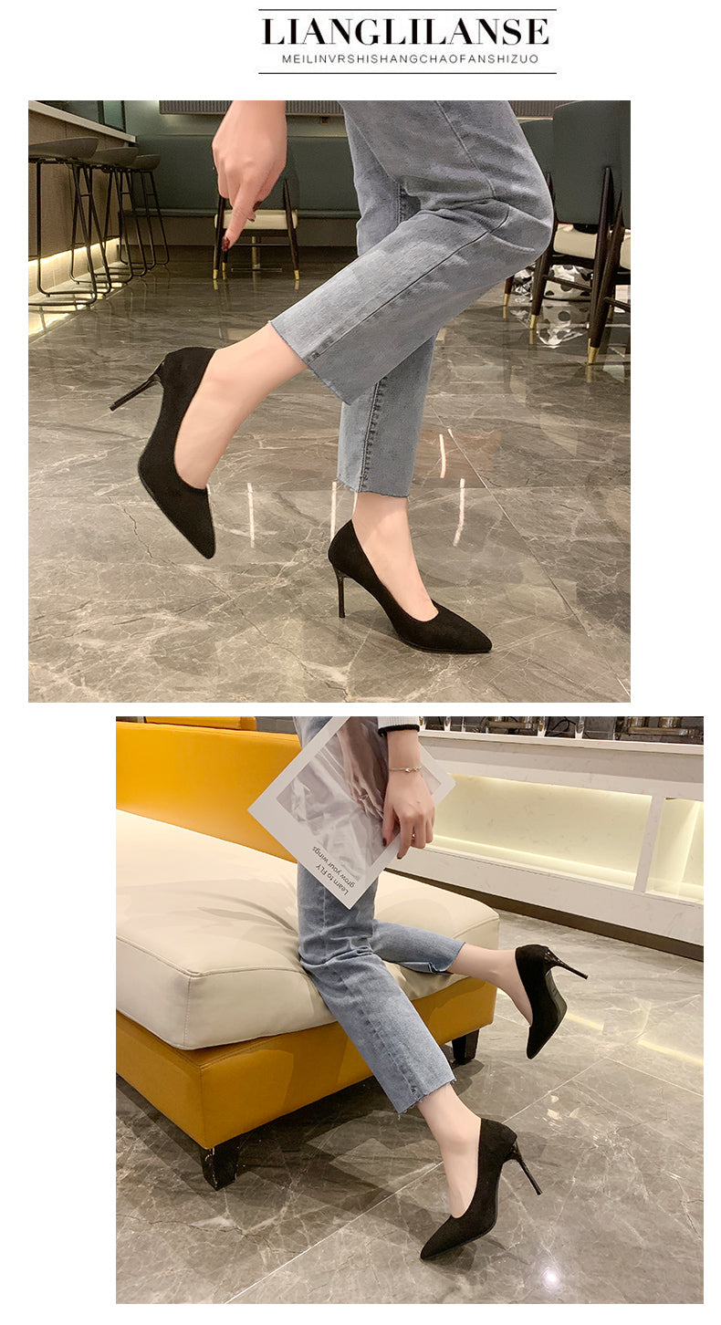 Women New Mid Heeled Sandals Black 6-8-10cm Pointed Thin Heeled Baotou Banquet High Heeled Shoes Womens Shoes Tacones Mujer