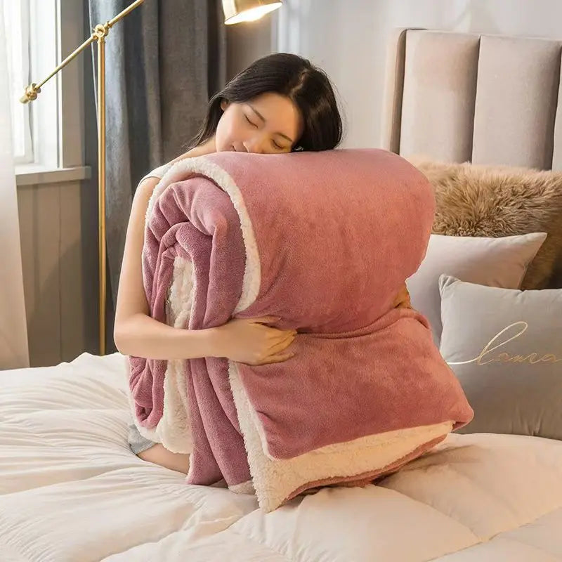 Wool Throw Blanket Keep Warm Winter Bed Blankets Double Sided Queen Duvet