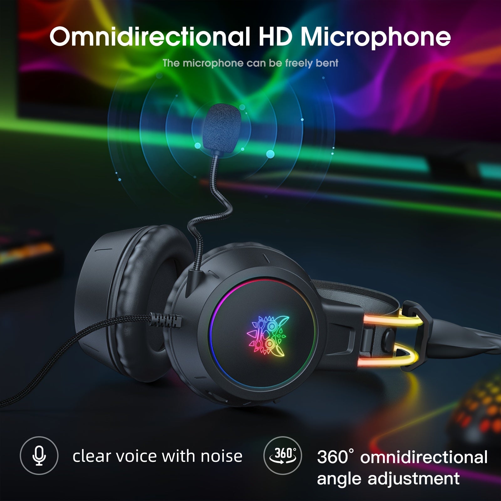 X15pro black RGB wired gaming headphones with a pair of cute deer ears, noise reduction,
