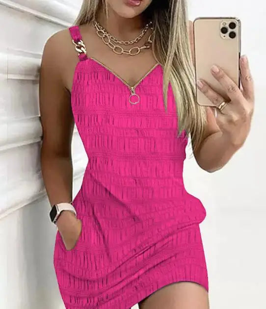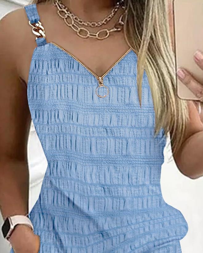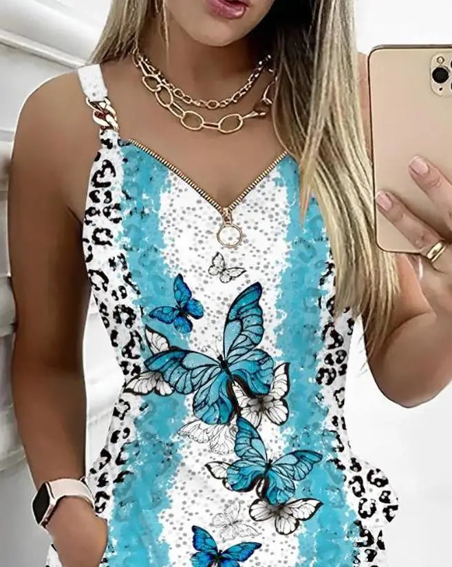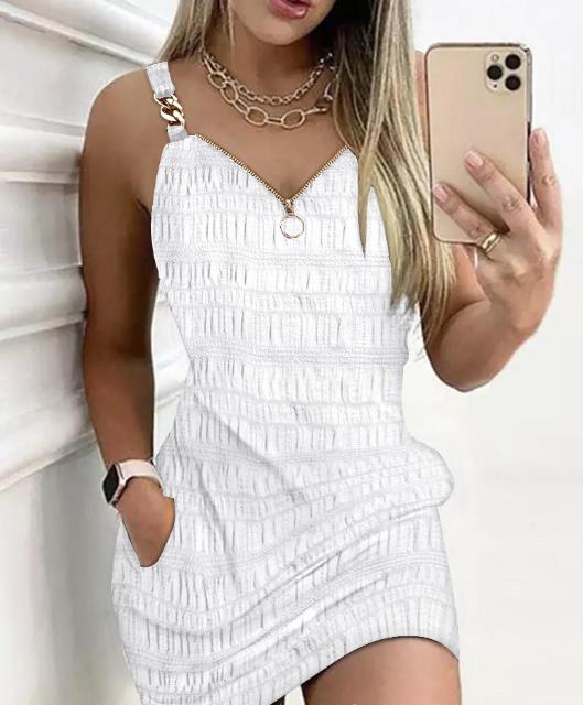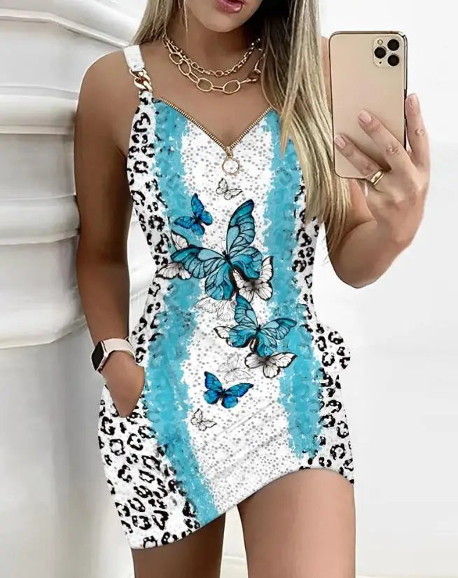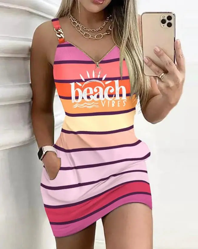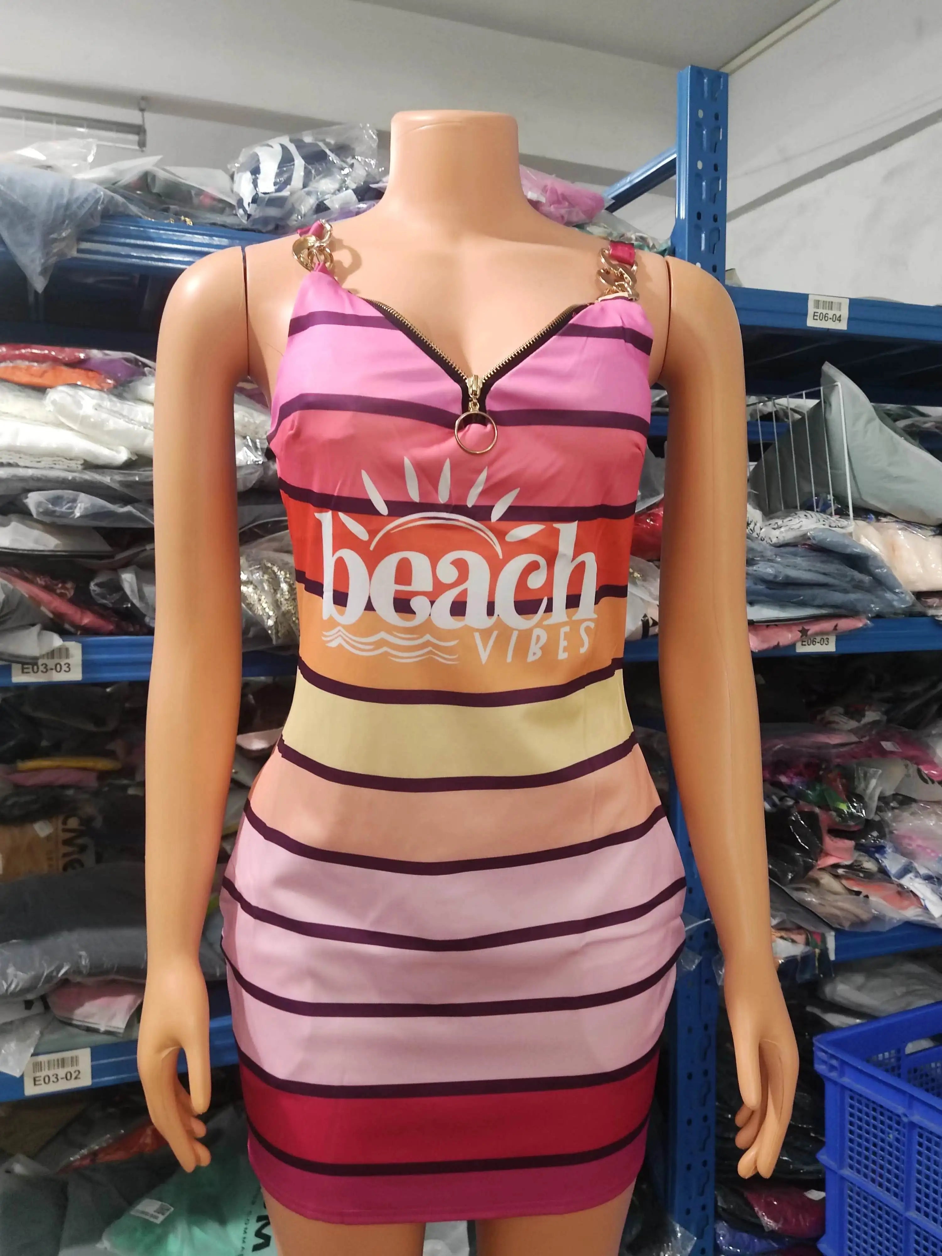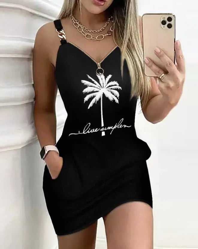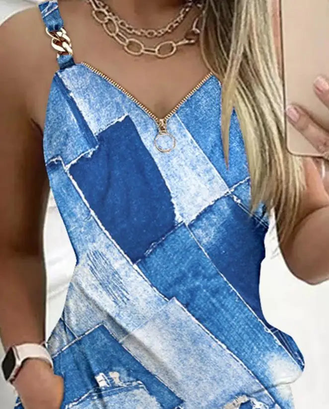 Y2K Fashion Women's Dress Casual Sexy Strap Sleeveless Denim Look Print Chain Decor Casual Dress 2025 Summer New Ottd
